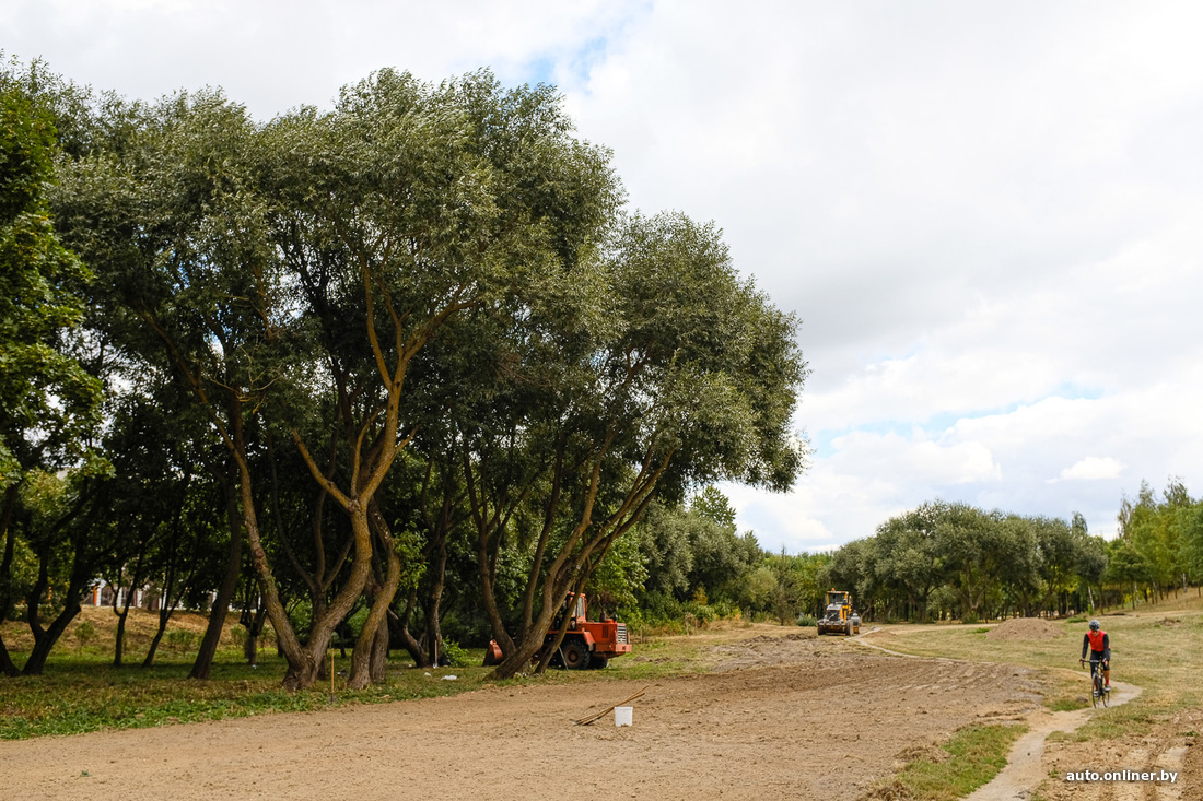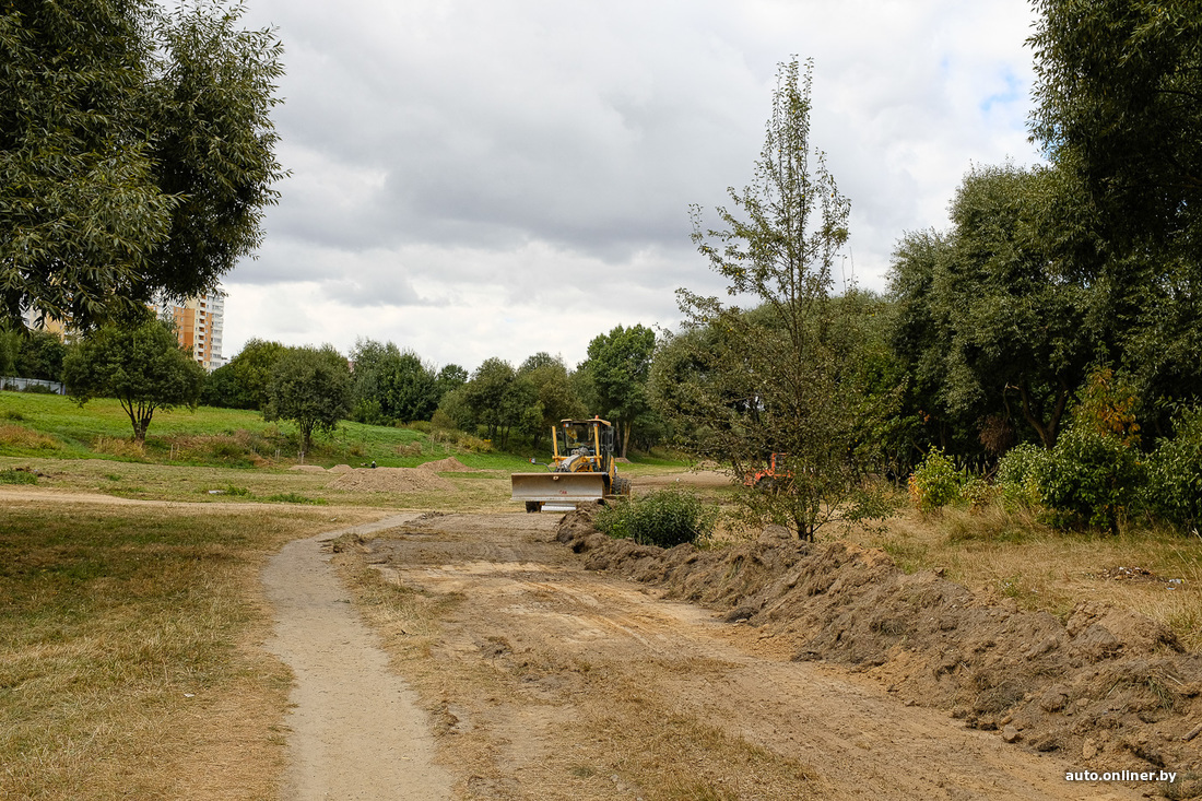 В общем, покуролесив здесь, направляемся дальше, в сторону улицы Громова. Парк сужается, в этой его части ведутся какие-то земляные работы. Место выглядит подходящим, чтобы обустроить его как следует: создать спортивные площадки, игровые поля — от людей отбоя бы не было. Пока же здесь пустовато, но оно и понятно: кроме как на бурьян смотреть особо не на что.