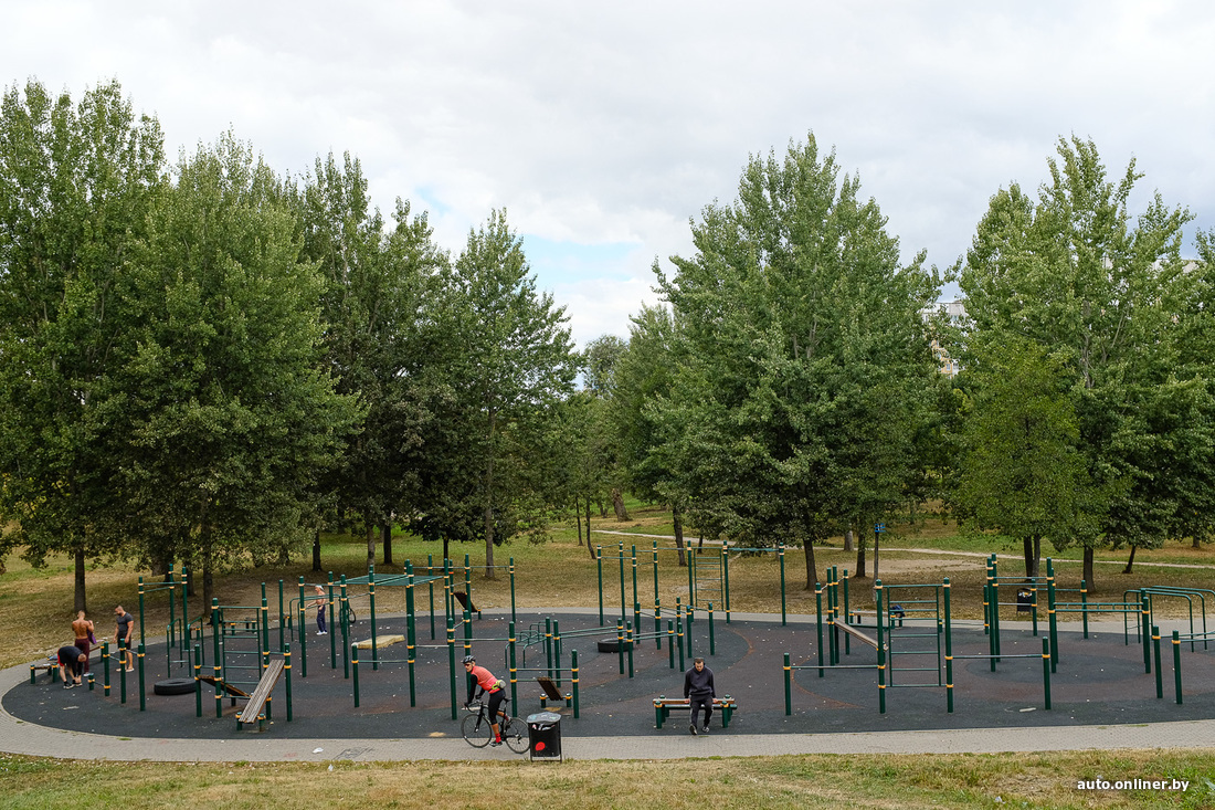 Поэтому направляемся в противоположную сторону. Парк им. Павлова, надо сказать, не особо большой даже по минским меркам. В центральной части есть холм, откуда открывается симпатичный вид на улицу Белецкого и многоэтажки Малиновки чуть поодаль.