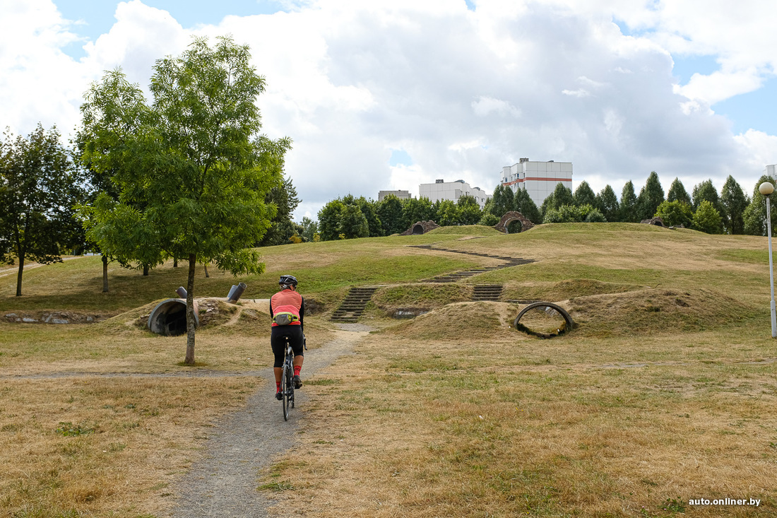 Мы начинаем с проспекта Газеты «Звязда», откуда продвигаемся к парку им. Павлова. Между жилыми массивами пролегает достаточно глубокий овраг, будто когда-то здесь неслась река. Реки нет, но есть приятные асфальтированные дорожки, которые наилучшим образом подходят и для пеших прогулок, и для неспешных городских велопокатушек.
