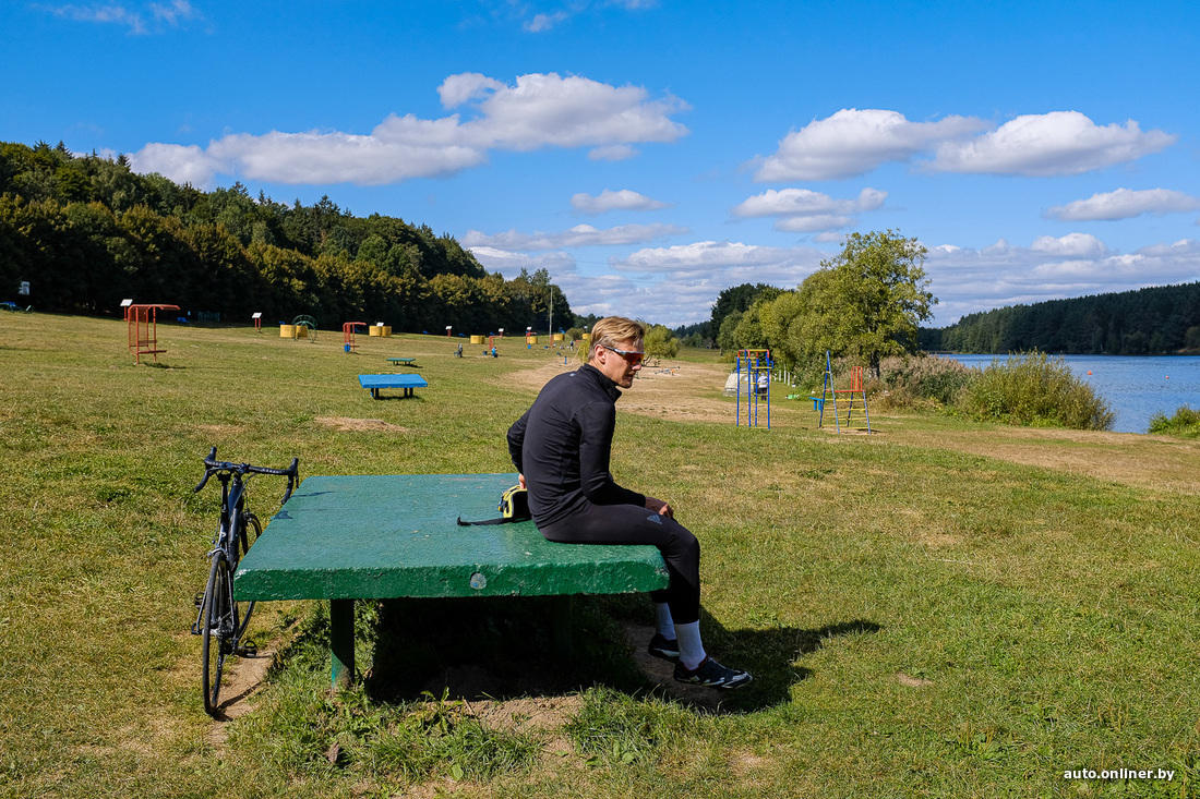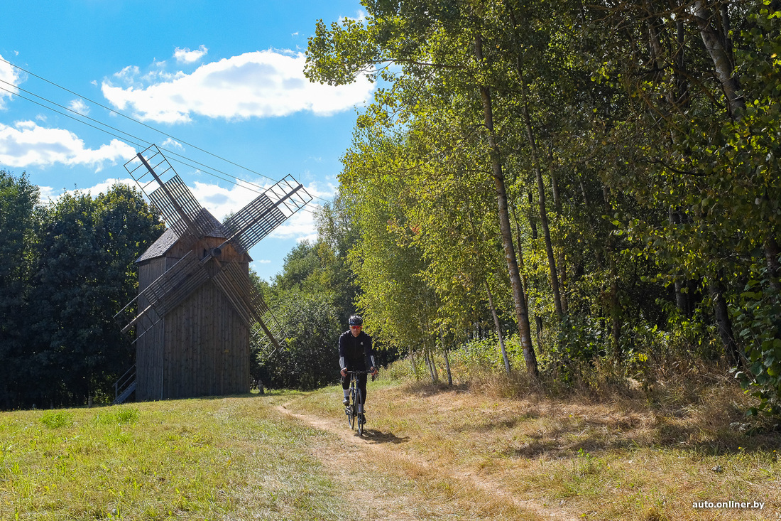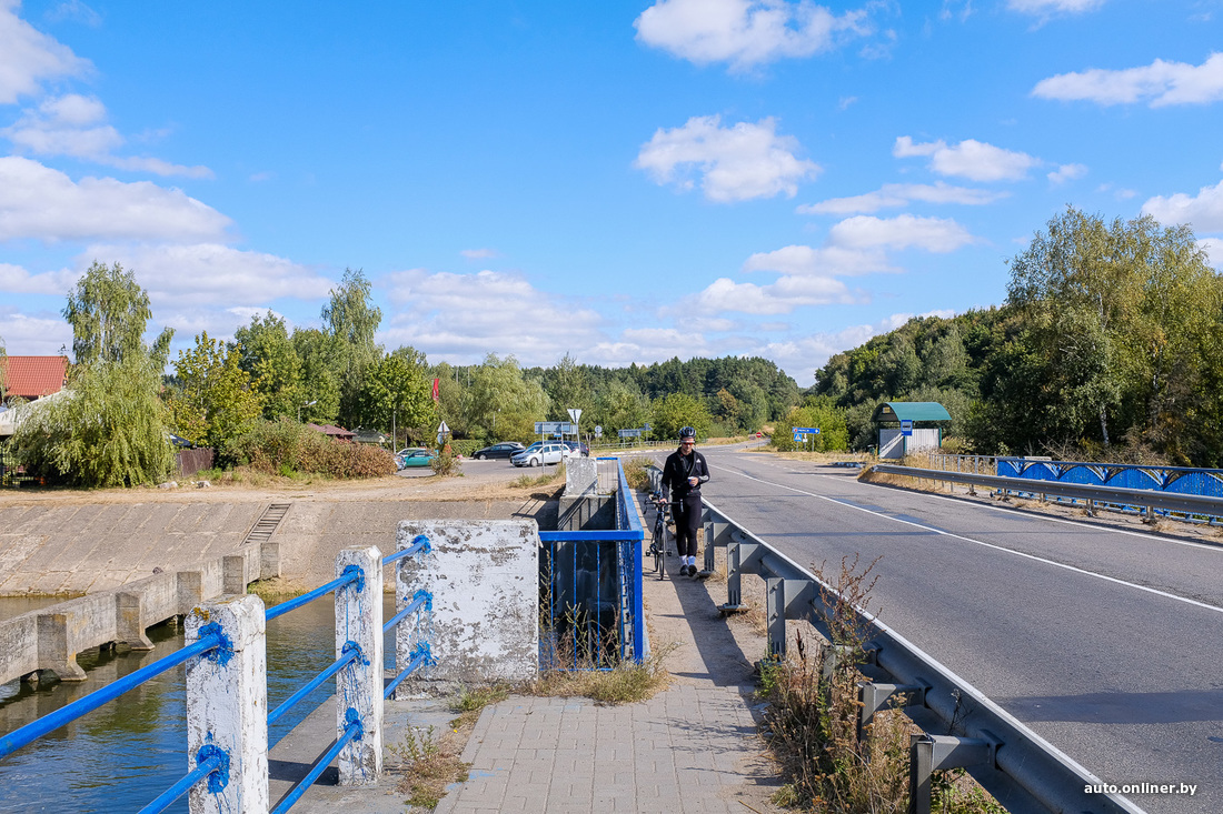 Недавно мы обкатали Юго-Запад и Малиновку, отсюда и стартуем сегодня, теперь за город. Проспект Дзержинского за кольцевой становится дзержинской трассой, и вдоль нее, по правую руку, тянется велодорожка до реки Птичь и Волковичского водохранилища. По ней сначала и двинем. На Птичи полюбуемся видами, отдохнем на пляже, откуда осенняя прохлада, как накатившая волна, разогнала отдыхающих, а затем свернем в деревни: настоящую и открыточную — обе невероятно красивые под сентябрьским солнцем. Весь маршрут туда и обратно составит 30 км или часа 3—4 прогулочным темпом — небольшое, но полноценное путешествие выходного дня, которое осилит любой взрослый человек, знакомый с велосипедом.