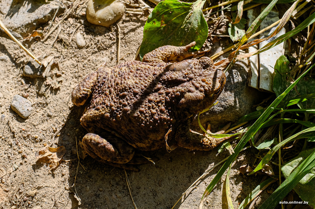 Здрасьте: а это что такое? Большущая жаба обленилась настолько, что даже не собирается прятаться. Она вяло прикидывается булыжником: авось не заметят, а заметят — ну и пофиг. Им, городским, лишь бы рот на что-нибудь поразевать, а у нее послеобеденный сон на солнышке.