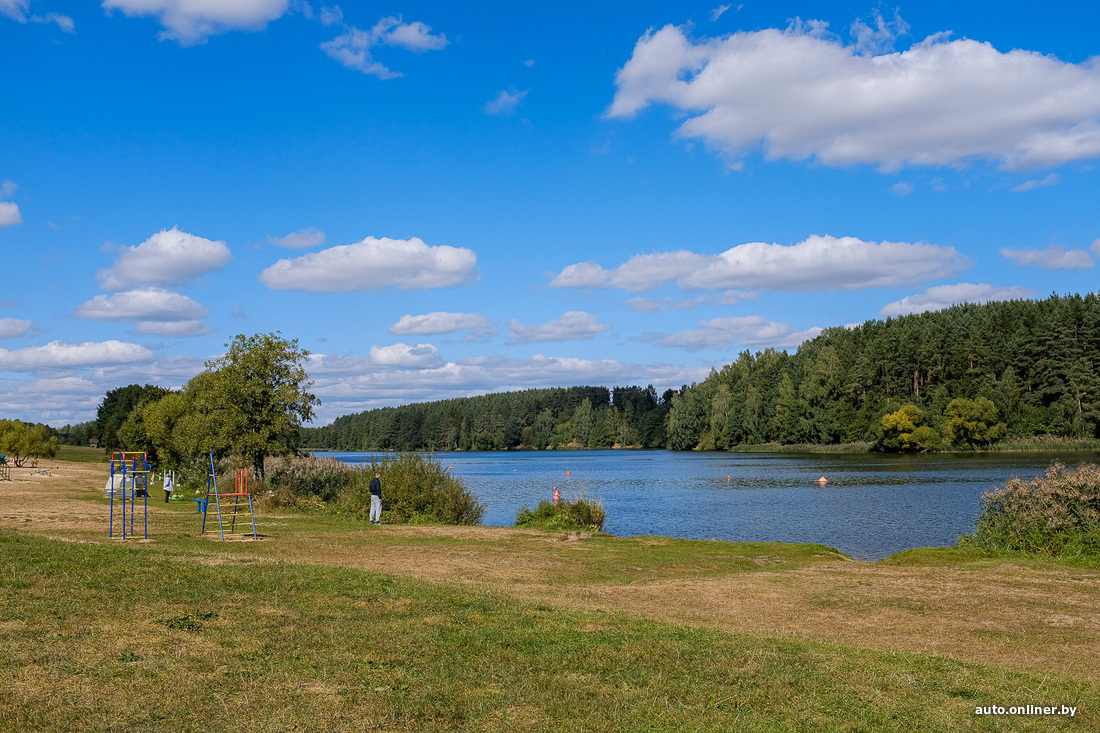Не переживайте, долго по этой дороге ехать не придется. Пропускаем первые два поворота направо (один из них ведет к спасательной станции), а затем, как только увидим в лесу подходящую тропинку, съезжаем туда. Тропинка выведет вас на пляж, где в сезон яблоку негде упасть. Поговаривают, что все, кто подустал от попсовости Минского моря и загруженности пляжей на Цнянке, приезжают сюда.