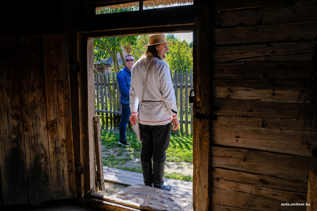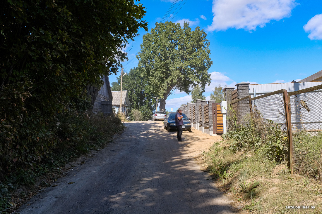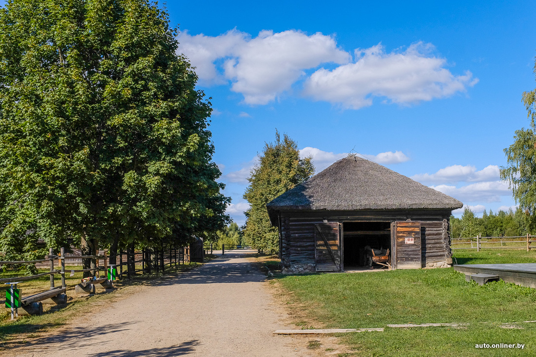 Уезжаем с пляжа, сворачиваем по указателю на Строчицы и оказываемся в деревне. Это еще не музейный комплекс, а обычная деревня недалеко от Минска. Здесь не очень хорошие дороги, по которым лениво расхаживают куры. Петух явно чувствует себя хозяином здешних мест, а может, просто выпендривается перед дамами — не хочет сходить с пути. Ладно, у него грудь колесом и хохолок аж пульсирует, а мы и правда не трамвай — объедем.