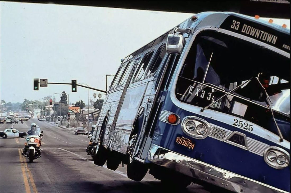 Автобус с пассажирами мчится по улицам и автострадам Лос-Анджелеса. Под салоном заложена бомба, которая взорвется, если скорость упадет менее 50 миль в час. За всем этим в прямом эфире наблюдает террорист Говард Пейн. Крутой экшен с кучей аварий, разноплановых съемок и великолепной игрой от звездного состава актеров. Гонорар Киану Ривза за съемки в «Скорости» составил сумасшедшие для 1994 года 10 000 000 долларов. А вот Сандра Буллок получила в 20 раз меньше.