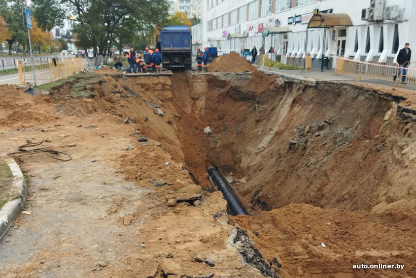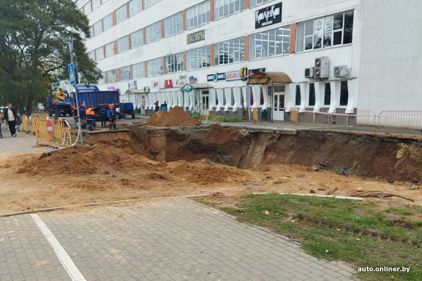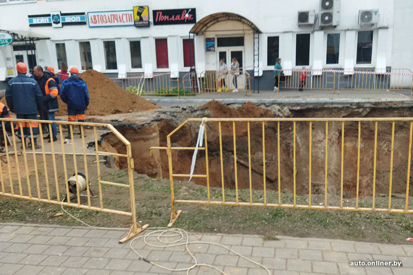 Во вторник в Солигорске на половину корпуса ушел под землю грузовой автомобиль с цистерной. Это произошло на следующий день после сильного дождя. Предполагали, обрушился свод трубы канализационного коллектора, что повлекло за собой проседание асфальта. Машину вытащили, а участок дороги раскопали.