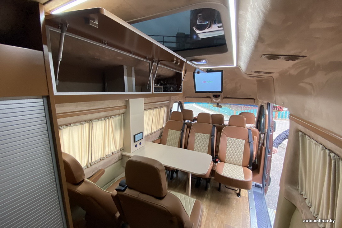 Существует даже VIP-офис с отделкой кожей кремового цвета и специальными держателями для бокалов с шампанским. Тоже работа предприятия «МАЗ-Купава».