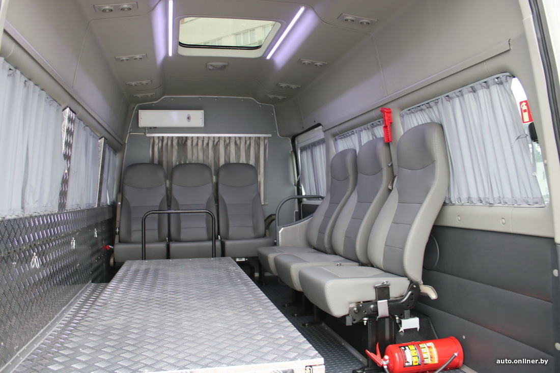 Самое логичное применение для белорусских JAC Sunray — автомобили скорой медицинской помощи. Первый опытный образец завод «МАЗ-Купава» представил еще два года назад. Сейчас существует уже доработанная версия. На фото ниже именно она.