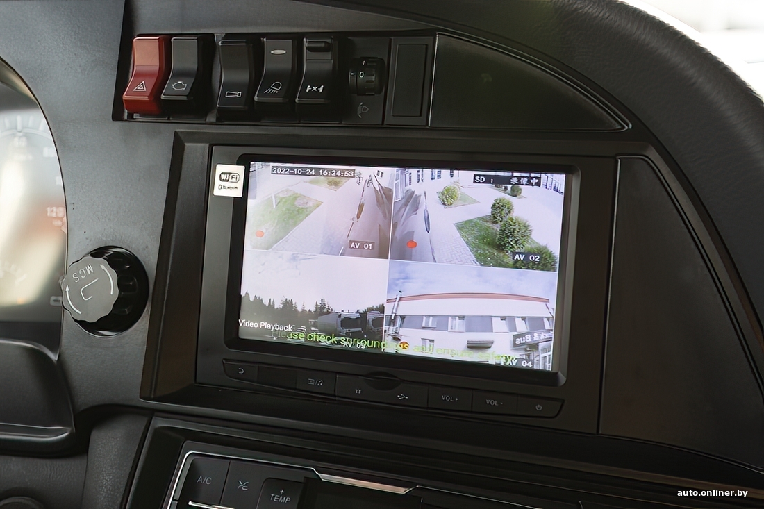 Отдельно стоит упомянуть мультимедийный (музыка и видео) сенсорный экран диагональю 7 дюймов с функцией Bluetooth и возможностью громкой связи. На этот же монитор выводится изображение камер. Тут их четыре: спереди, сзади и в боковых зеркалах (последние запускаются при включении поворотников). Камеры ведут запись постоянно, хранятся файлы неделю.