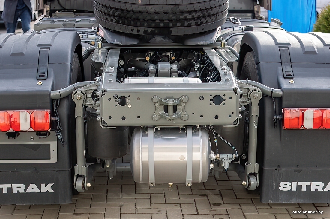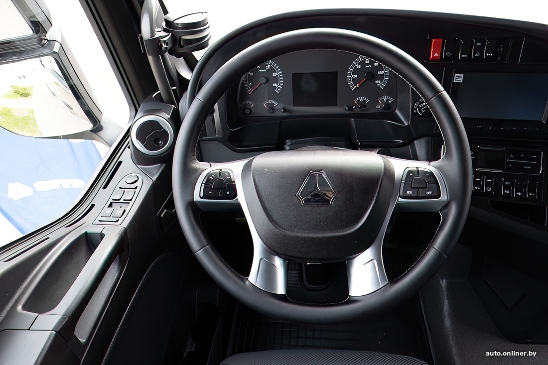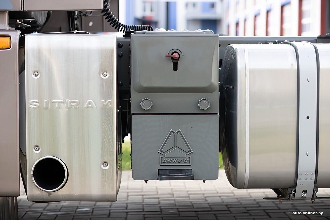 Представители «Белтракэндбас», официального дистрибьютора модели, показали модель Sitrak C7H 4x2. В ней много элементов от европейцев, сделанных по лицензии в Китае. Кабина тягача напоминает MAN, за исключением решетки, радиатора, оптики, солнцезащитного козырька.