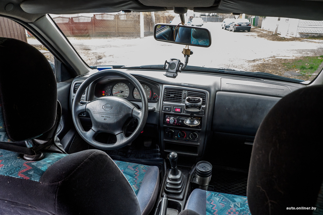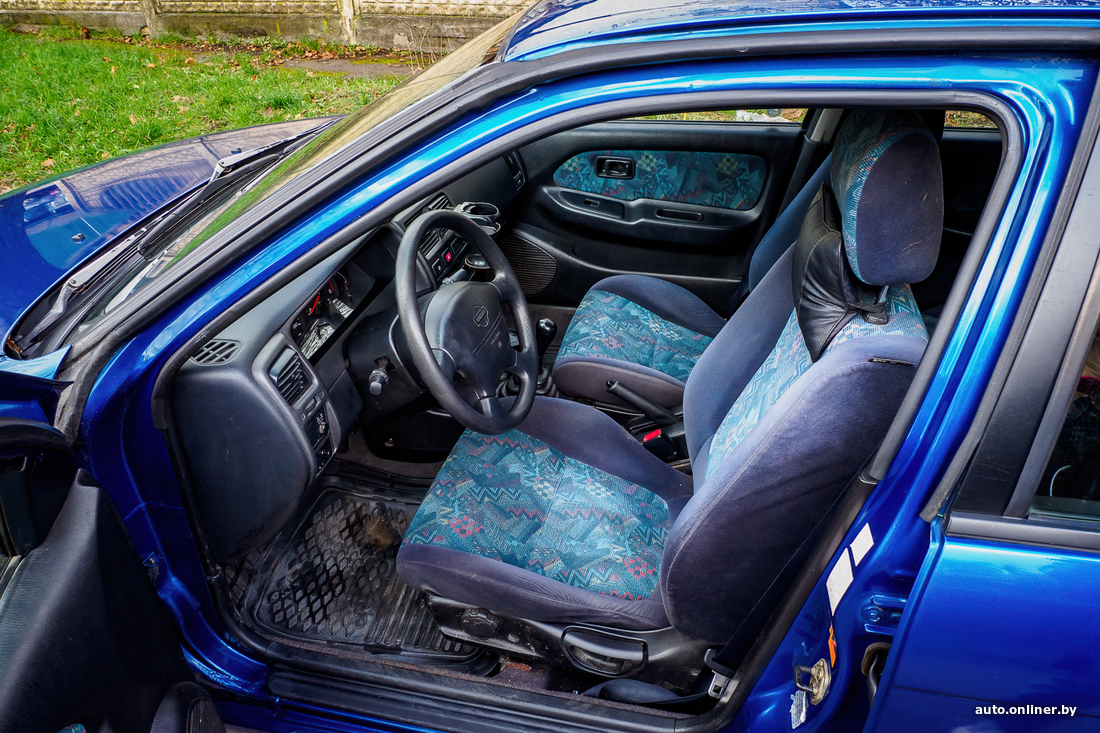 Зато надежный японский мотор работает ровно (только немного «сопливит»), в сочетании с механической коробкой чувствует себя бодро: для своих лет машина неплохо набирает скорость. Отдельный лайк за аккумулятор Bosch. Салон? В лучших традициях 90-х. Да, уставший, но без дырок и рваных швов.