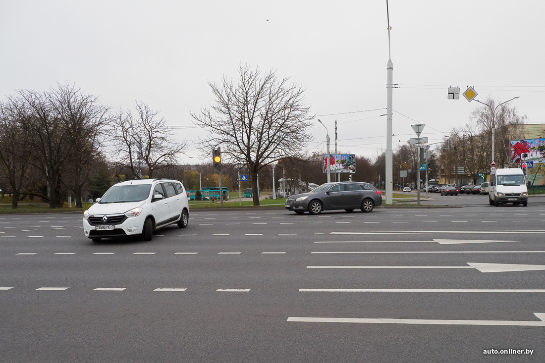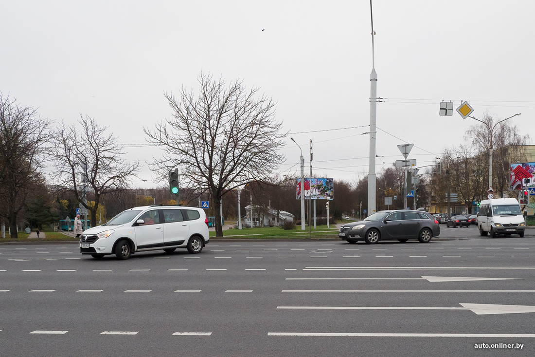 — Если ориентироваться только на понятие границы перекрестка, то можно сказать, что перед нами их два. Формально пересечение Логойского тракта с улицей Седых и такое же пересечение с улицей Гамарника друг на друга не наслаиваются. Вместе с тем с помощью средств организации дорожного движения можно объединить два таких перекрестка в один. И именно это мы и видим.