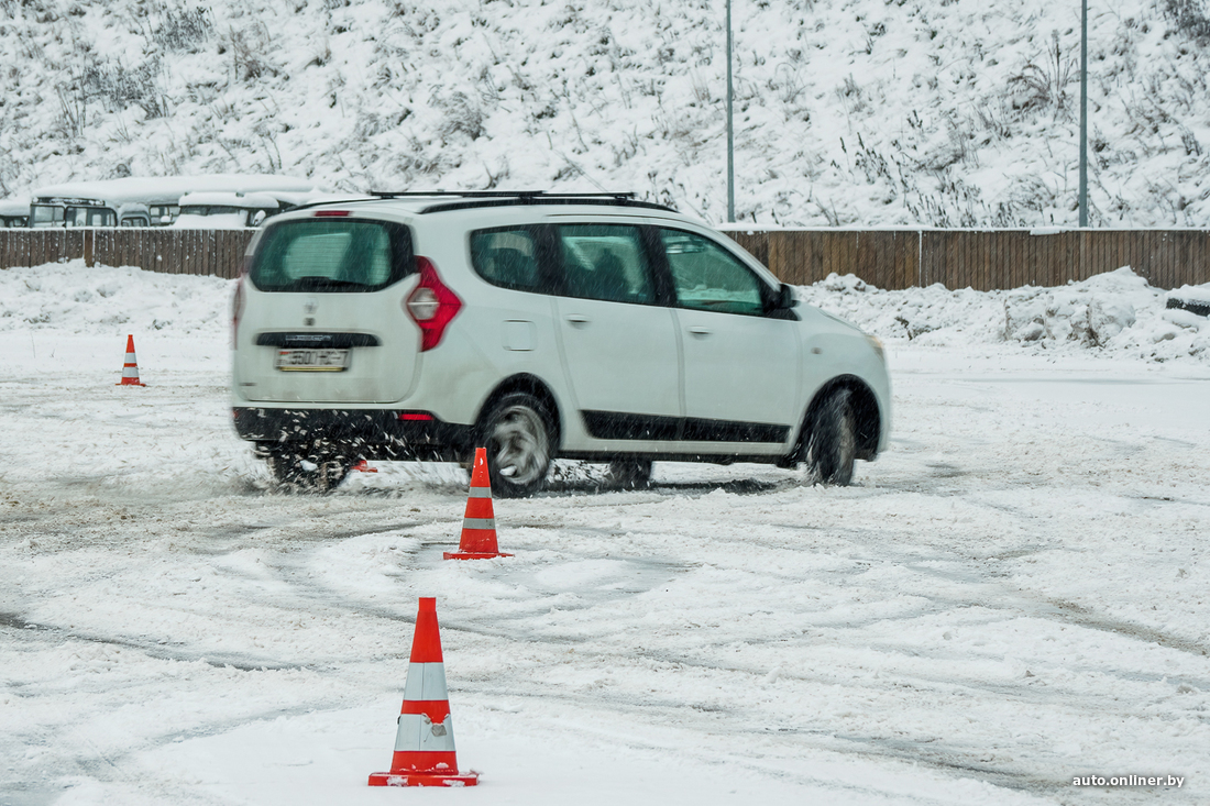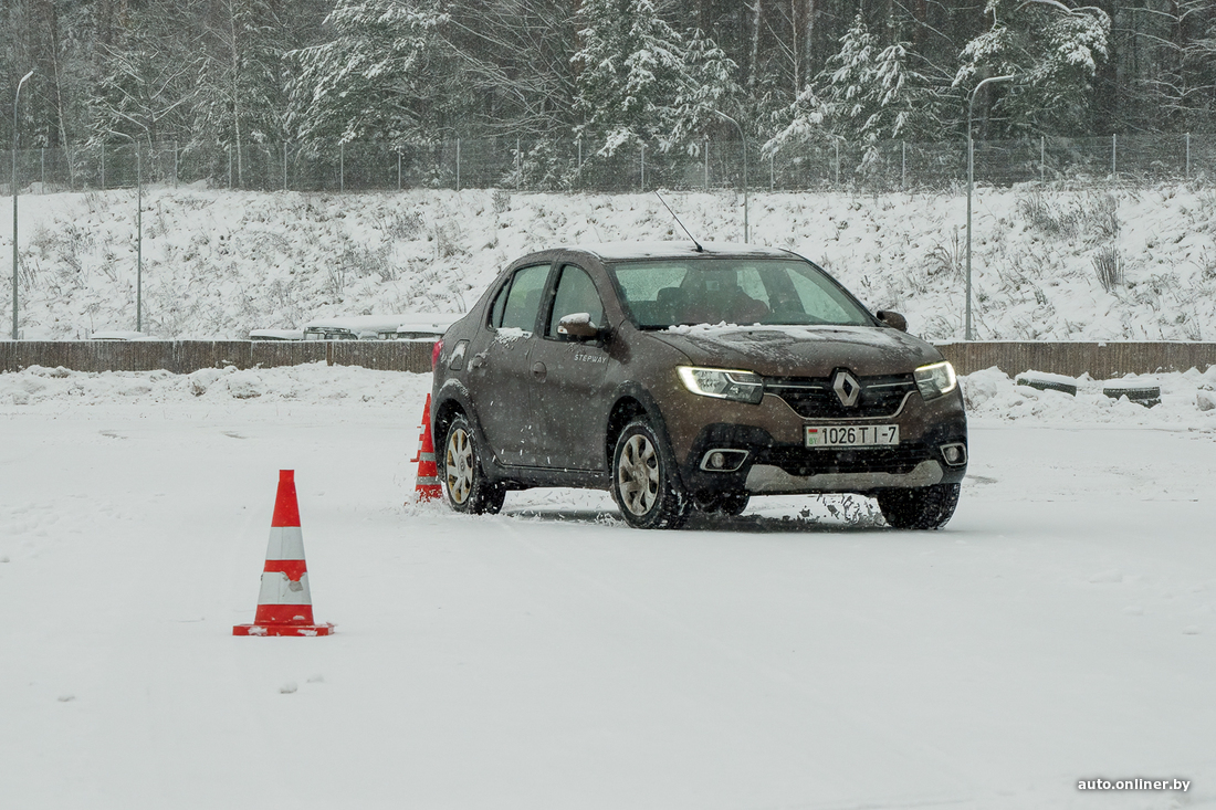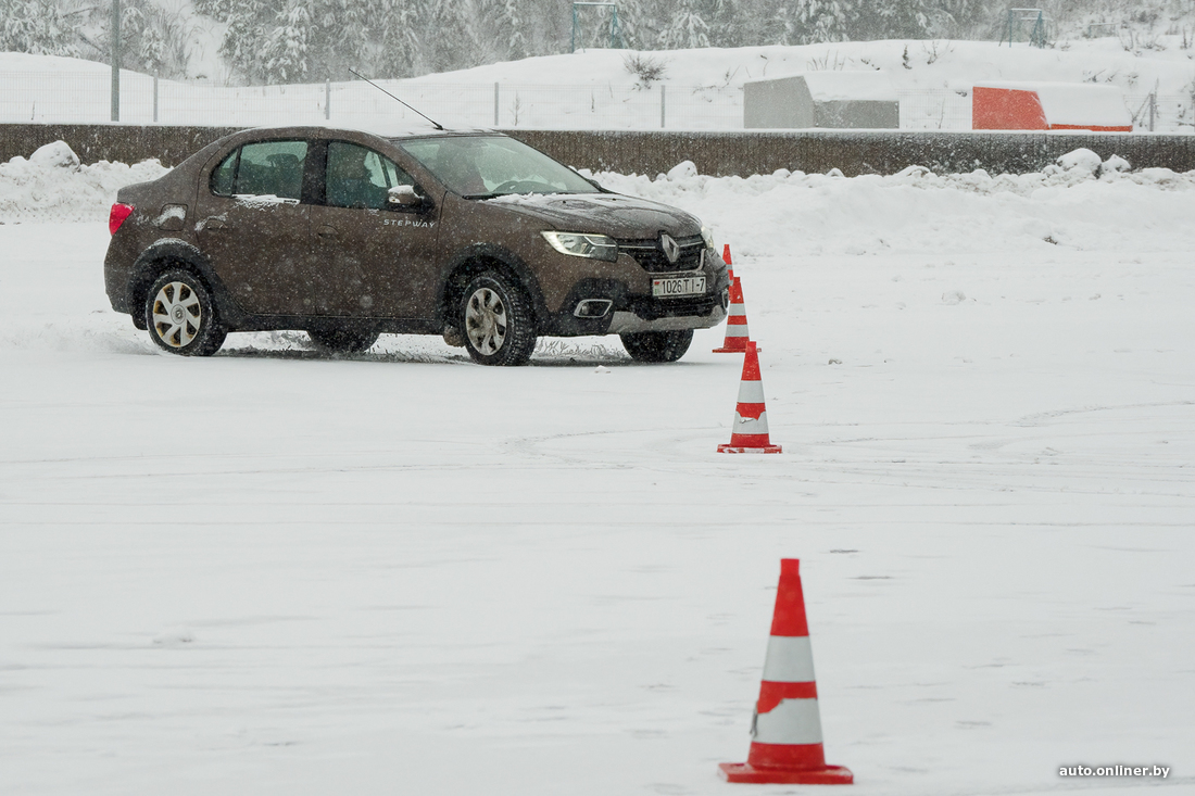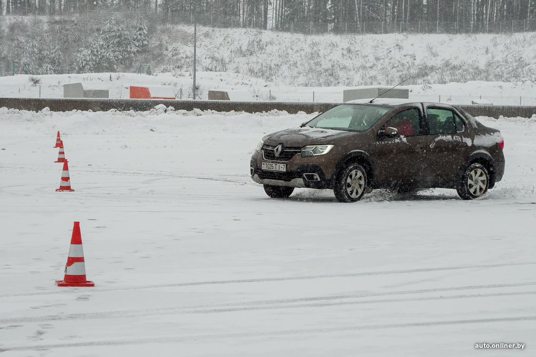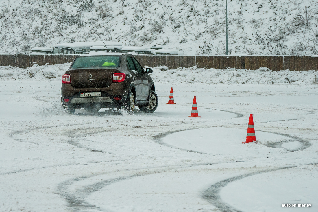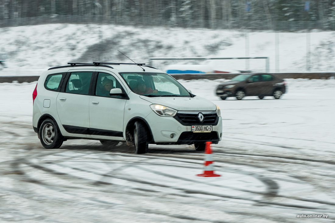 — Мы хотим показать, как не нужно управлять автомобилем и как следует выходить из заноса, если он все-таки случился. Автомобиля у нас два. Первый — белый Renault Lodgy, он оборудован ESP. Другая машина — коричневый Renault Logan Stepway без ESP. Вот и посмотрим, как противозаносная система работает, — потирает руки инструктор.