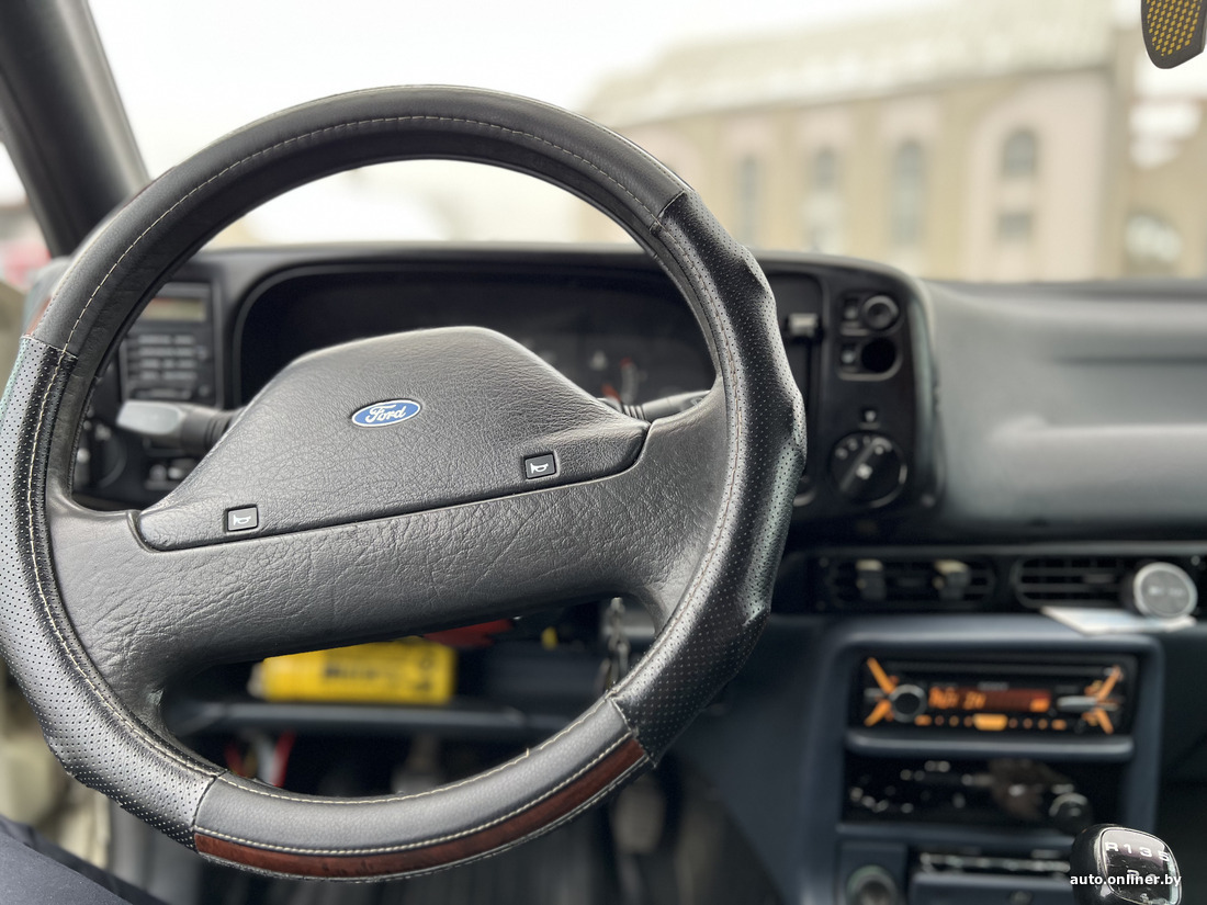 — Салон при покупке был в нормальном состоянии, но пришлось одеть сиденья в чехлы: у меня двое детей, которые любят забраться на диван с ногами. Мне не хватало подлокотника — купил с такого же Ford Scorpio, но с более богатой комплектацией. Радует то, что салон просторный, а подвеска мягче, чем во многих современных машинах: это отмечают и пассажиры. Багажник — точно больше, чем в каком-нибудь новом Volkswagen Polo Liftback. Из недостатков могу отметить отсутствие кондиционера. Он предусмотрен в машине как опция, но в этой комплектации его нет, хотя можно купить на разборках за $100—120.