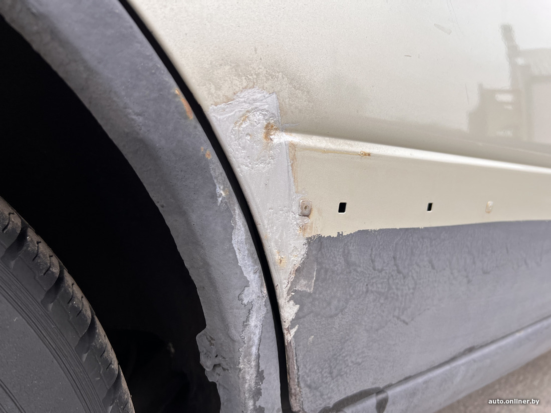 — Автомобиль слегка помяли в области заднего левого крыла еще до его приезда в Беларусь. Элемент выпрямили без шпатлевки. Сам я дважды попадал в ДТП: бампер и фары пришлось менять, суммарно на это ушло 75 рублей. Весной я собираюсь покрасить нижнюю часть дверей — они обработаны гравитексом.