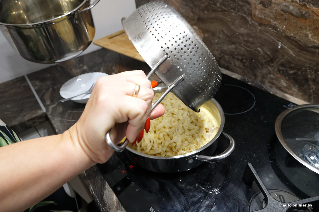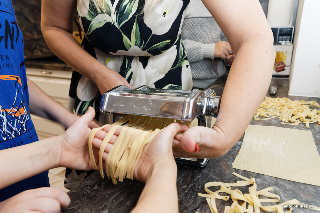 — Рецепт «правильной» пасты: на 100 граммов муки берется одно яйцо. И это все. Если яйцо маленькое, можно добавить чуть-чуть воды, но я не люблю маленькие яйца. Тесто должно полежать, отдохнуть. Я кладу в холодильник, но это не обязательно.