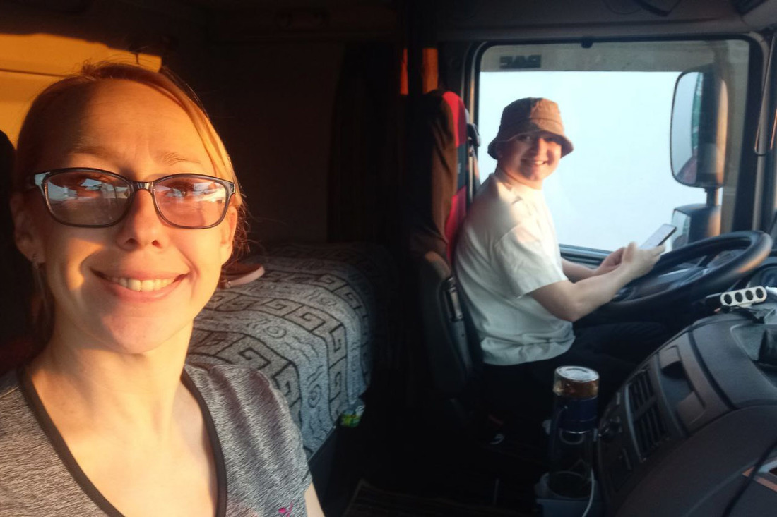 — Меня иногда спрашивают: как ты ездишь на большой машине, не страшно? Но мне на ней спокойно и уверенно. После фуры пересесть на легковушку — вот это страшно. Поколесив два года за рулем, понимаю все подводные камни этой профессии — есть особенности и в Европе, и на восточном направлении, когда на российско-грузинской границе месяцами стоят, чтобы пересечь кордон. А в Казахстане бывают такие ветра, что фуру с грузом переворачивает сильным порывом. Трудно в ливень зачехлить/расчехлить прицеп. Если холодно и у тебя замерз рефрижератор, его надо горелками пару часов оттаивать. Но у меня есть опора — муж. Моя же функция в нашем экипаже — служить музой. Я муза, я вдохновляю. У нас была ситуация: Сергей чинит машину, а я рядом сижу. Проходит соседка: «Ты чего сидишь возле мужа?» — «Вдохновляю, — сказала я. — Пока я рядом, у него чинится. Если уйду, работа не пойдет».