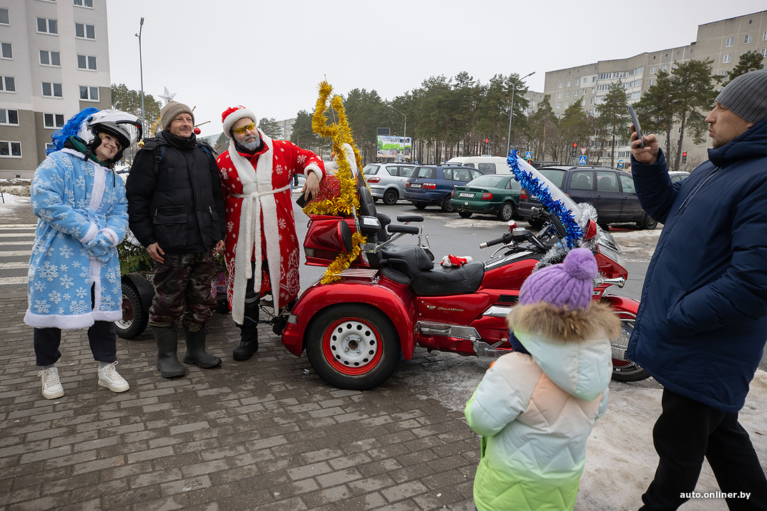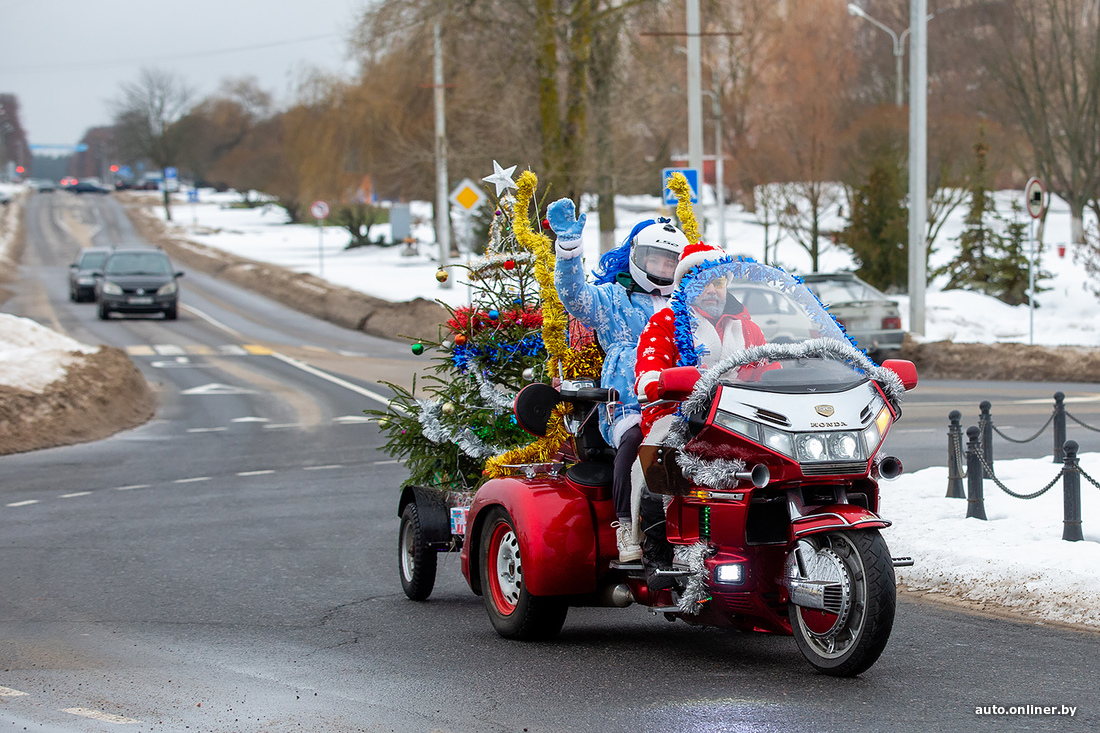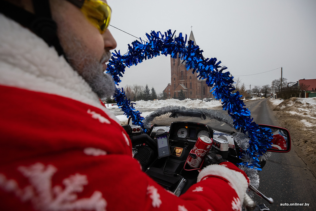— Как все начиналось? В 2019-м накануне нового года стояла хорошая погода: асфальт сухой, на улице тепло, — вспоминает Андрей. — Праздничного настроения не было совсем, а в гараже скучал любимый мотоцикл (впоследствии его пришлось разобрать) — Honda Gold Wing. Решил поднять настроение себе и горожанам. Съездил в Жлобин, там купил костюм Деда Мороза, выехал на улицы Светлогорска. Прокатился под праздничную музыку, людей это зацепило — соцсети заполнились фотографиями сказочного персонажа на байке.