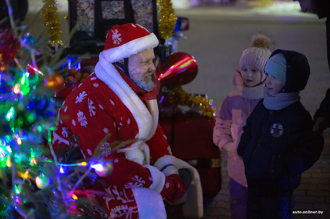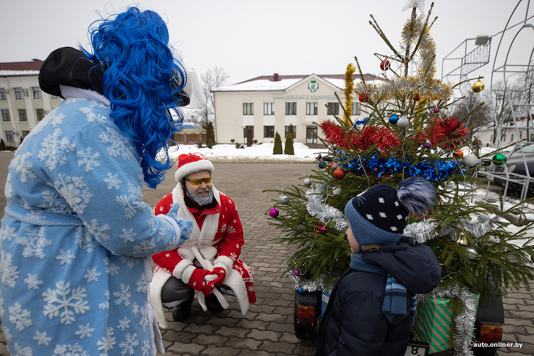 На прощанье еще раз подъезжаем к площади с центральной елкой. Фотограф не успела даже включить фотоаппарат, как после возгласа «Хоровод!» все присутствующие, взявшись за руки, закружились вокруг трайка с елочкой под новогоднюю мелодию. Кажется, и взрослые, и дети очень соскучились по атмосфере праздника за этот год. Мы даже успели поспорить с Андреем, будут ли так же радостно встречать Деда Мороза на трицикле в Минске: светлогорец пообещал как-нибудь заглянуть на гастроли. Но сегодняшний день он проведет на малой родине и обязательно выедет в город, если погода будет позволять. А на грядущий сезон тоже есть планы: недавно автопарк Андрея и его друзей пополнился… лимузином. Так что новогодний кортеж ждут масштабные изменения — но это уже в следующем году.