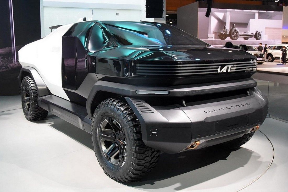 И напоследок расскажем о самом, пожалуй, эксцентричном и безбашенном экспонате выставки в Гуанчжоу. Это пикап IAT T-Mad, своего рода китайский ответ Tesla Cybertruck. Построен он компанией IAT Automobile Technology и был представлен в статусе предельно оторванного от реальности шоу-кара с шокирующей внешностью и нескромными габаритами: в длину этот «монстр» насчитывает 5,87 м, в ширину — 2,19 м, а между осями у него 3,62 м.