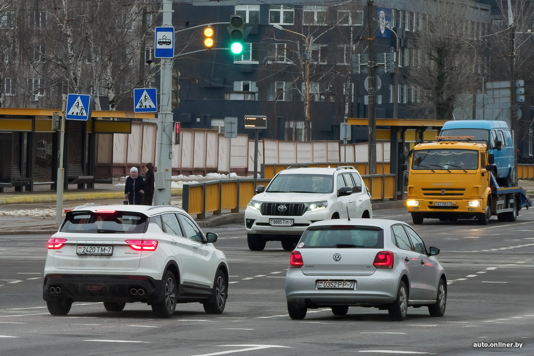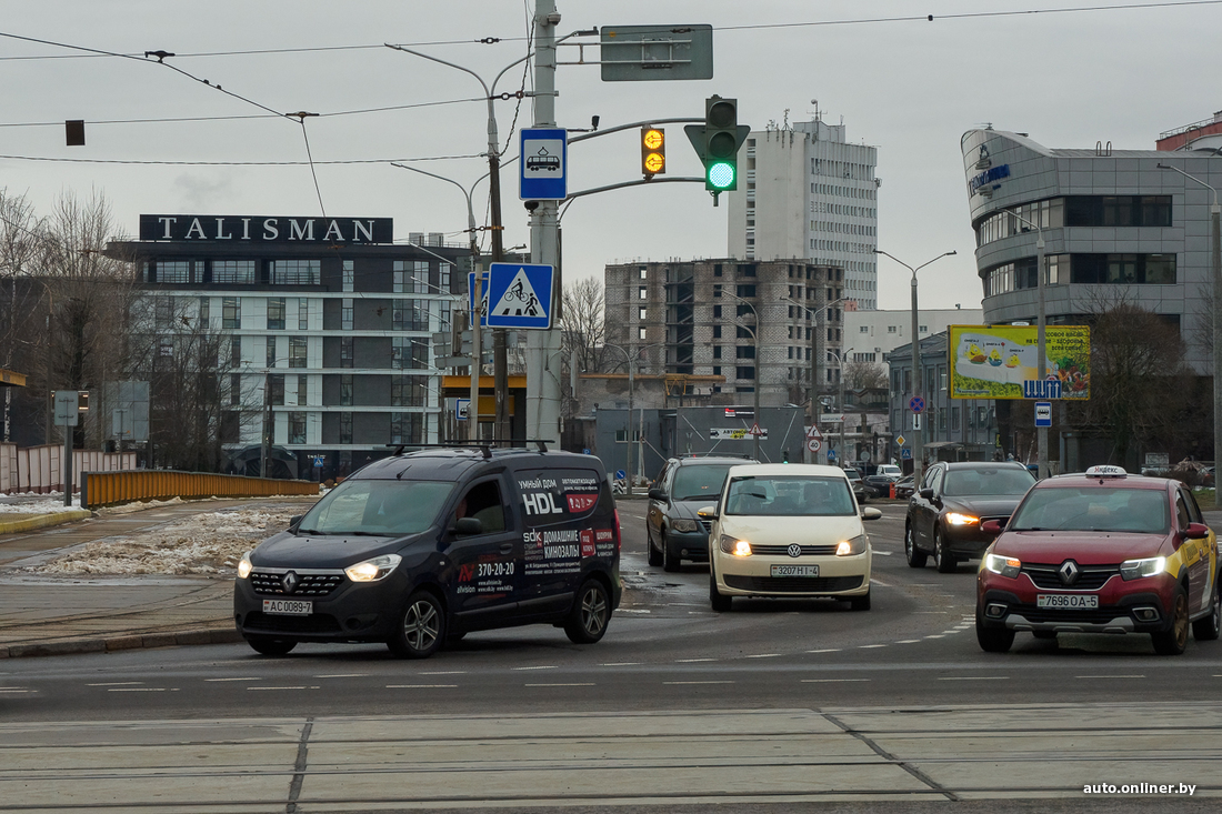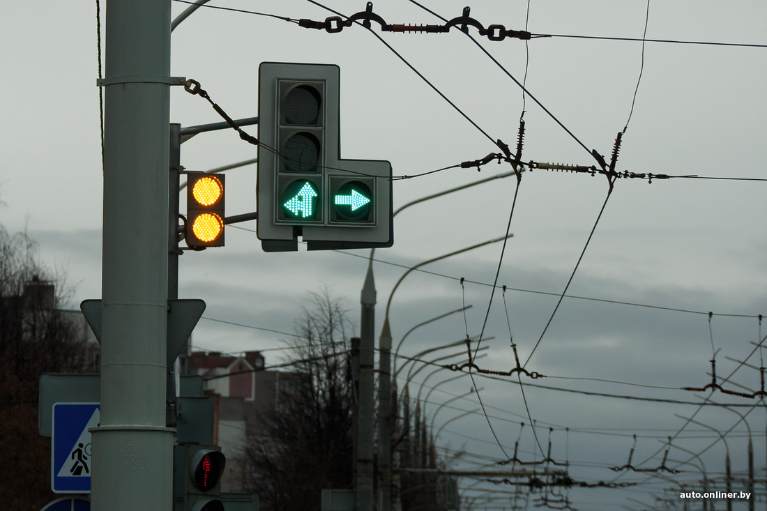 — В Минске тоже придумали свой экспериментальный вариант, его можно увидеть на перекрестках Платонова — Козлова и Шаранговича — Горецкого. Рядом со светофором установили две желтые секции, которые мигают, — рассказывает ведущий рубрики.