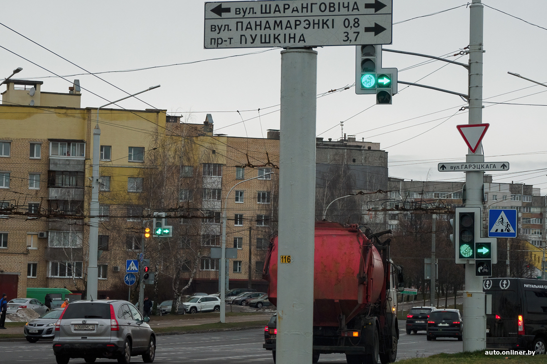 Зато эксперт похвалил организацию движения с другой стороны перекрестка, где улица Змитрока Бядули: