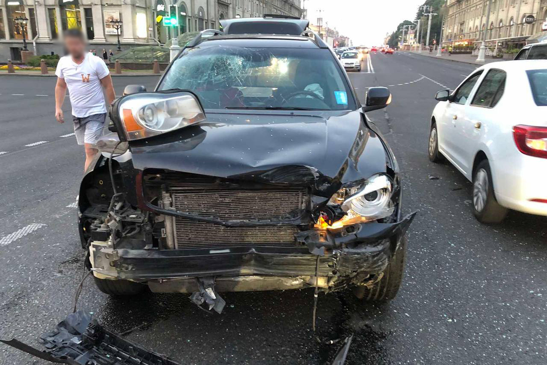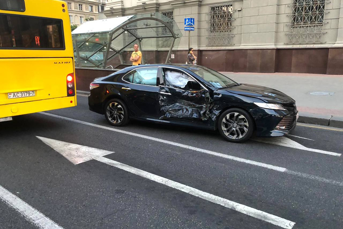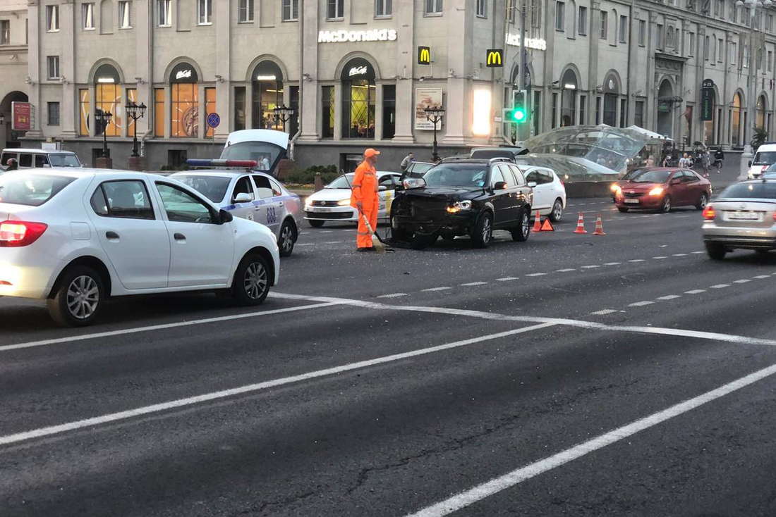 26 июля около 21:10 авария произошла в центре Минска. Toyota ехала по проспекту Независимости со стороны улицы Энгельса в направлении улицы Ленина и столкнулась с Volvo, который выезжал на проспект с улицы Ленина.