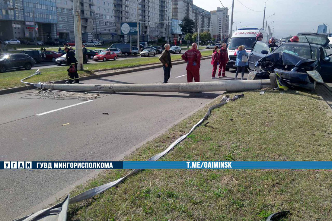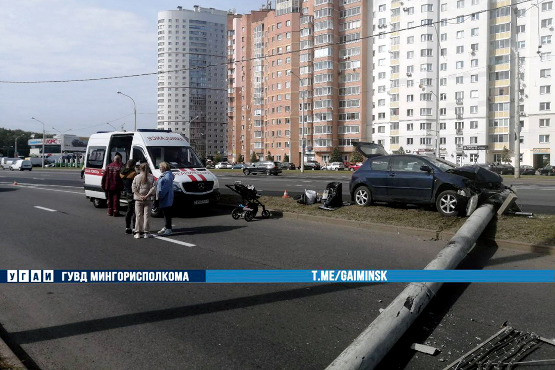 — Около 12:00 34-летняя женщина за рулем Toyota двигалась по проспекту Независимости со стороны МКАД. В районе съезда на улицу Стариновскую она не справилась с управлением, совершила наезд на бордюрный камень, затем врезалась в опору освещения, — рассказали в столичной ГАИ.
