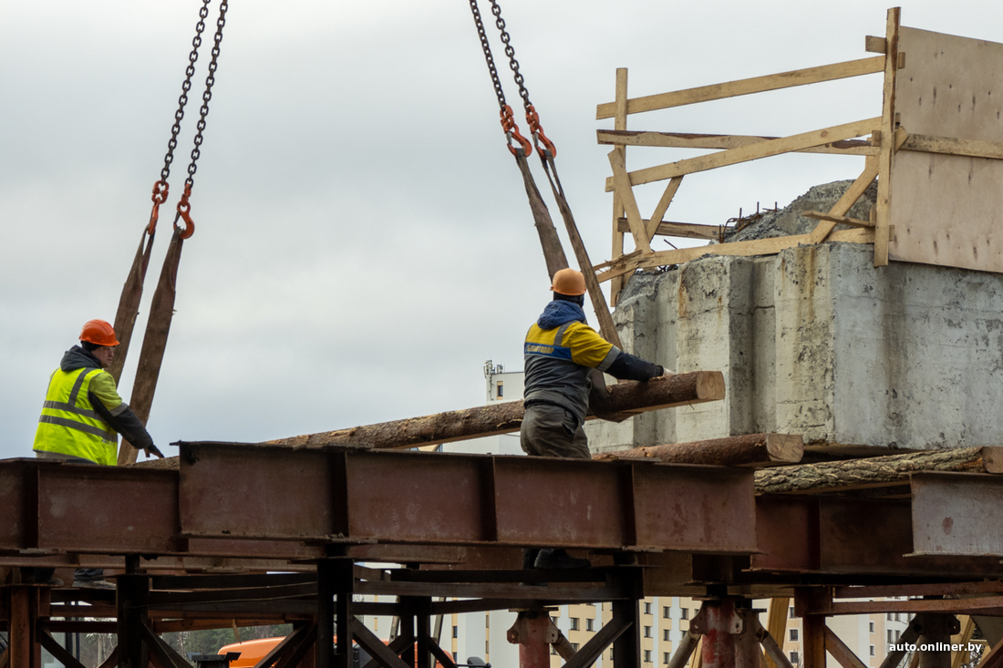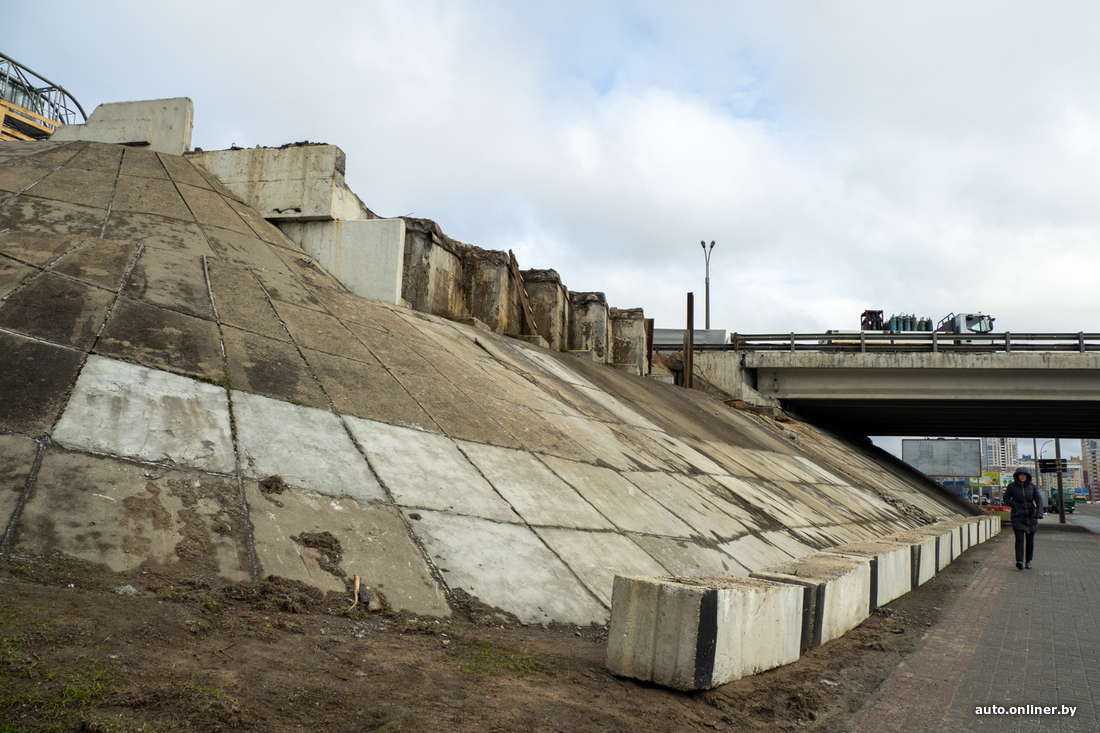 В начале февраля стали реконструировать путепровод на 25-м км МКАД. Речь об участке кольцевой в районе пересечения пр. Дзержинского и выезда из столицы в направлении Бреста. В этом месте собираются увеличить ширину МКАД. Движение на некоторых участках временно ограничили. Сейчас, спустя почти два месяца после начала работ, вырисовываются очертания объекта.