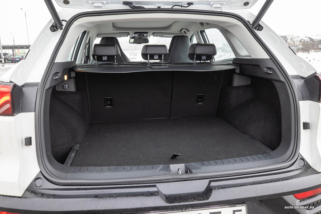 Та же история и с багажником. Приятный бонус — электропривод двери и возможность ее бесконтактного открытия. Багажник на 490 литров объемом не впечатляет, но зато радует практичностью. Ниши по бокам, довольно много свободного места вокруг запасного колеса, такелажные петли, розетка, подсветка — все продумано. Единственный нюанс — при складывании спинок задних сидений образуется перепад высотой сантиметров 10.