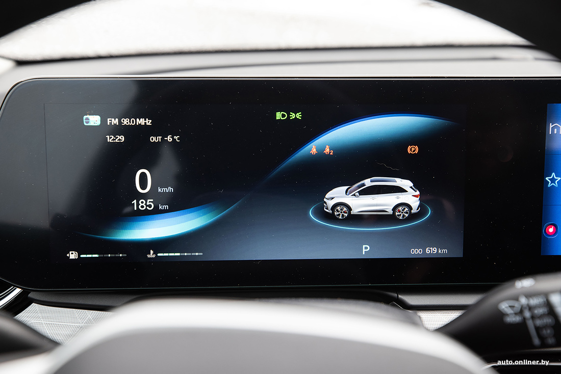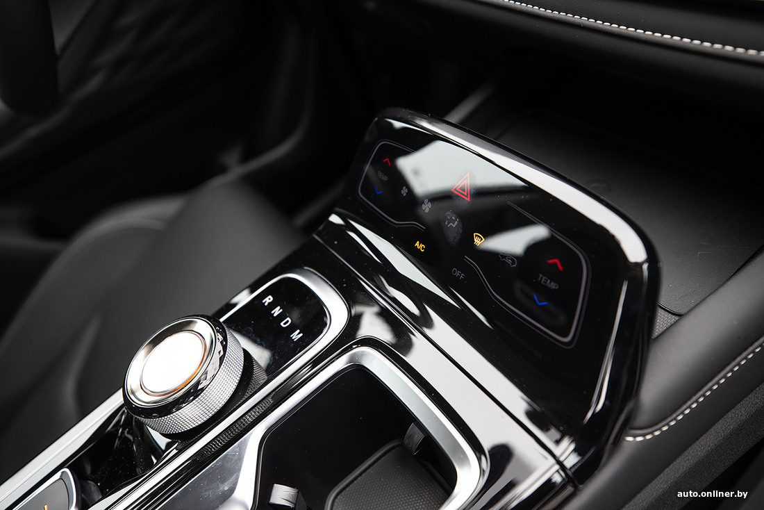 Это заметно и по интерьеру. Два больших экрана, объединенных в одно целое. Вращающийся селектор коробки передач. Ниша под центральной консолью. Псевдоалюминиевые вставки на панели. Сенсорные клавиши. Камеры кругового обзора. Все это когда-то было фишкой премиальных моделей и очень-очень долго двигалось по пути к массмаркету. А китайцы просто взяли и объединили все достижения автопрома в одной машине, причем безо всяких доплат и спецпакетов оснащения. Простите, но снова небольшой флешбэк: еще те же лет пять-семь назад, чтобы получить все эти опции, нужно было присматриваться как минимум к флагманским моделям, а теперь — вуаля! — получаем все и сразу в кроссовере, о котором еще пару месяцев назад в Беларуси знал только 1% населения.