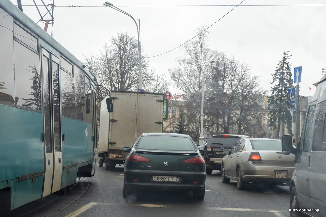 — Даже если трамвая нет — он все равно может появиться. Если много транспорта едет со стороны проспекта Независимости — его придется пропускать. А мы, допустим, на рельсах стоим, ждем. Сзади подъезжает трамвай, который ждать не собирается — он будет звенеть. И назад в свой ряд не вернешься — там поток, и никто тебя впускать не будет. Все — ничего не сделаешь, испаряйся, — инструктор нервничает, он явно не привык создавать другим проблемы на дороге.