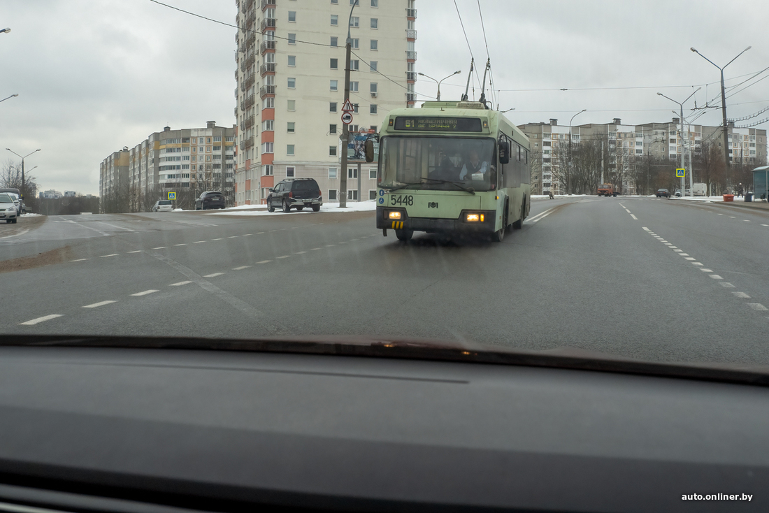 Такие же уверенные действия у водителей троллейбусов: они хорошо знают особенности этого перекрестка. Кроме того, транспорт у них специфичный — приходится ехать на низкой скорости, чтобы не соскочить с проводов или не застрять на обесточенном участке. Поэтому троллейбус или пропустит, или проедет немного вперед, чтобы дать повернуть у себя за спиной.
