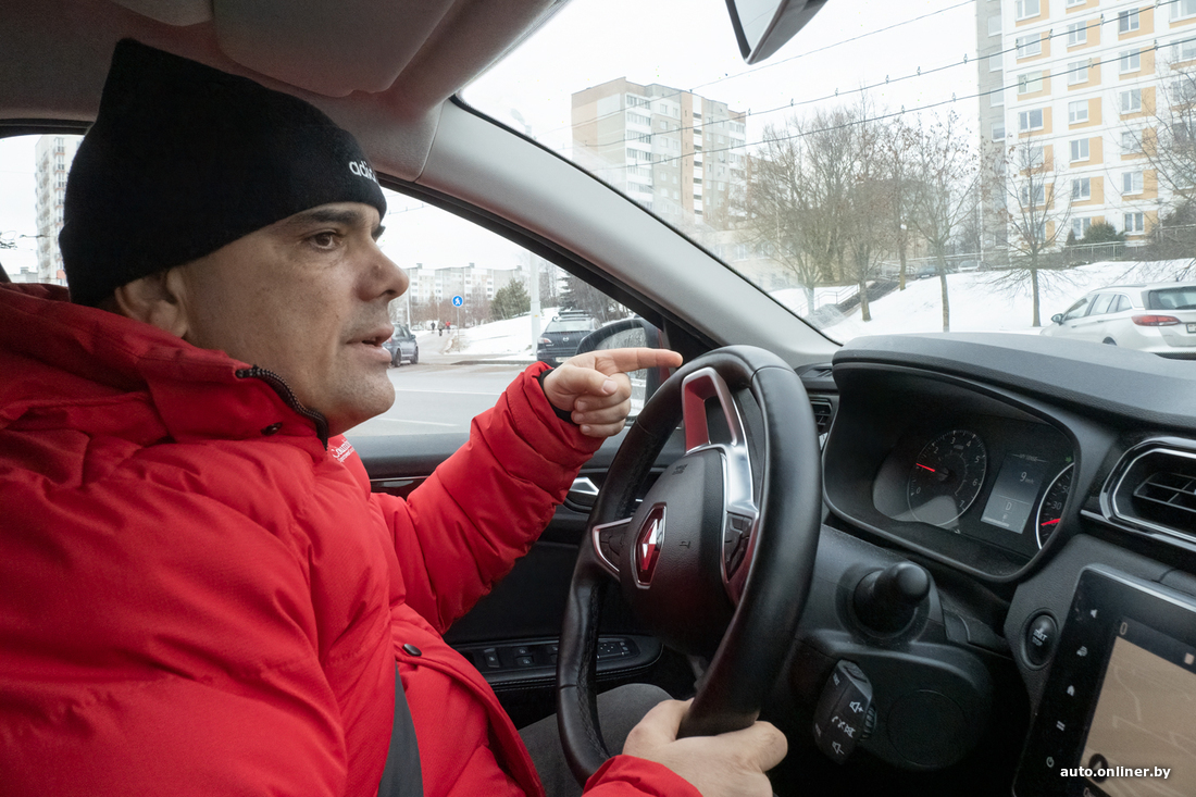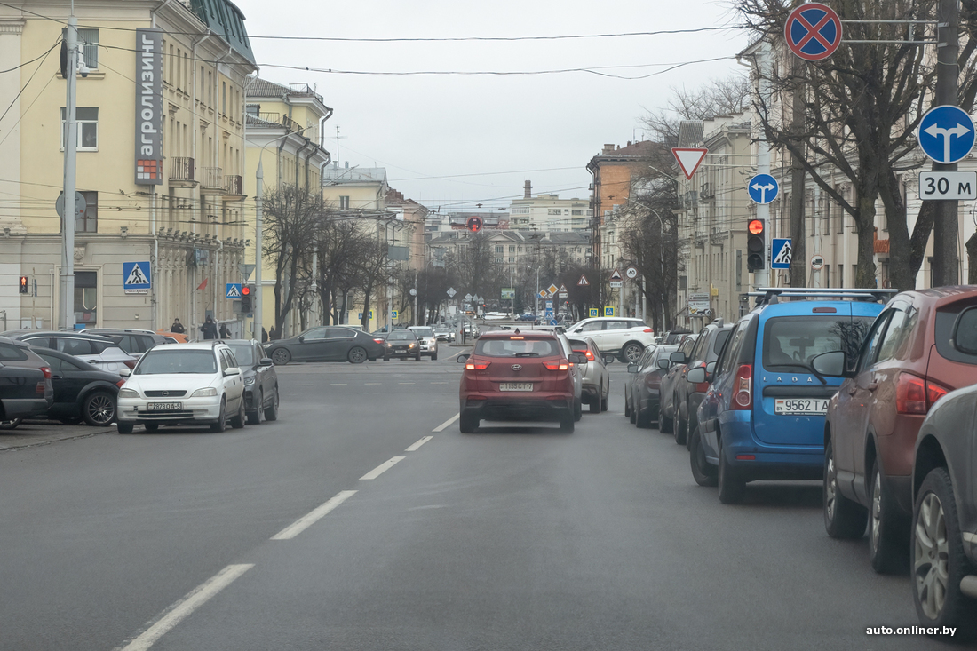 — Вот смотрите, передо мной двое водителей, они оба поедут неправильно, — Краснов заруливает по улице Красной. Направо выезд на проспект Независимости, по прямой — улица Якуба Коласа.