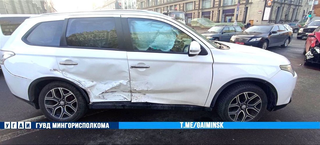 Инцидент произошел около 15:25. 27-летняя водитель Kia на пересечении проспекта Независимости и улицы Ленина, выехав на красный сигнал светофора, столкнулась с двигавшимся слева на разрешающий сигнал Mitsubishi.