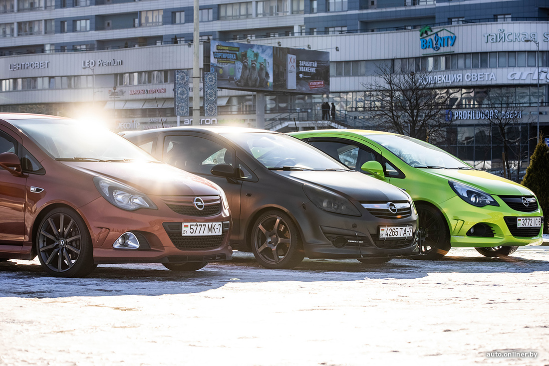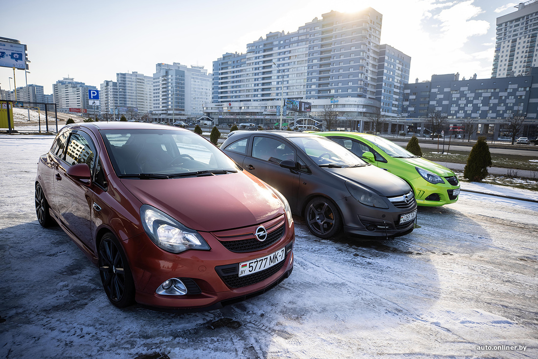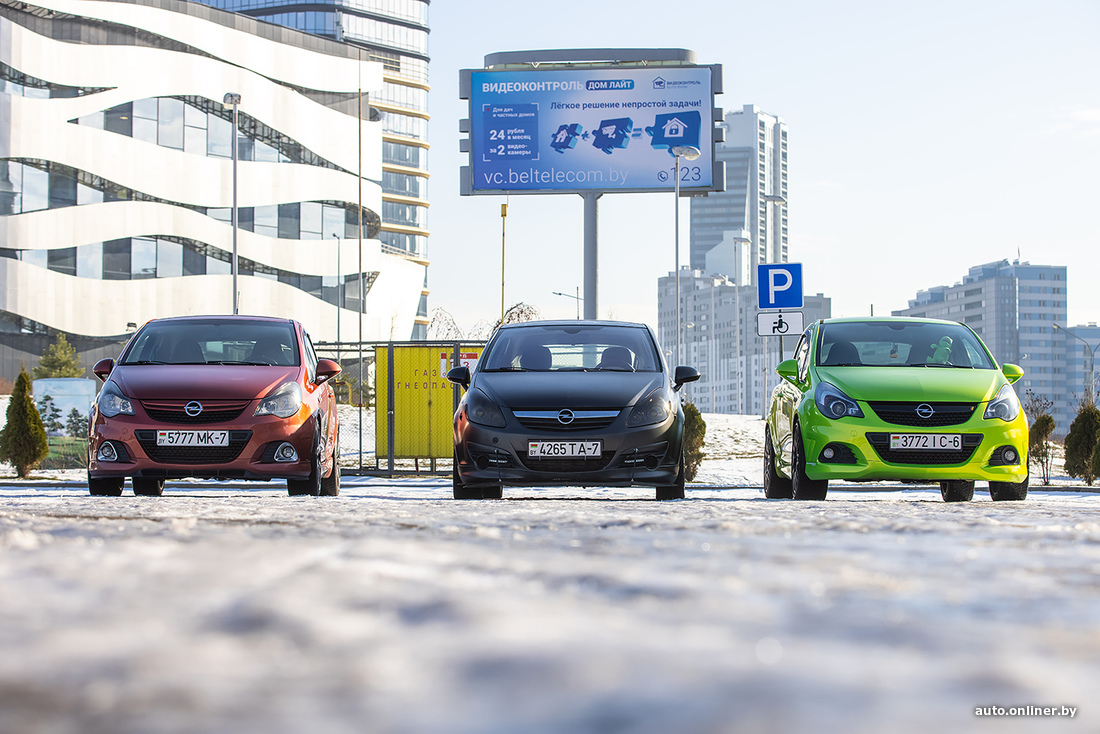 В свое время — в 2007 году — Opel Corsa OPC стал самой мощной версией «Корсы» за всю историю существования этой модели. Спортивный хетчбэк быстро обрел фанатов, которых чуть позже, спустя четыре года, порадовали еще более «заряженной» и редкой спецверсией Nürburgring Edition. Таких машин в мире всего 500, но единичные экземпляры ездят и по нашим дорогам. Мы отыскали белорусского владельца модели, названной в честь легендарной трассы, и вживую сравнили ее с обычной, но нескромной «опцэшкой». Присоединилась к фотосессии и одна из самых бюджетных версий «Корсы» — Opel Corsa GSi. Рассказываем про каждую.
