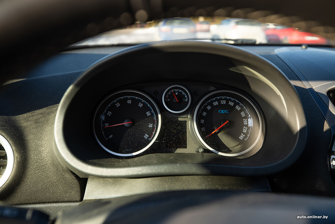 Перейдем к самой интересной машине из нашей горячей тройки. Это версия OPC Nürburgring Edition: модель была выпущена в 2011 году ограниченным тиражом в 500 автомобилей. Примерно 10 из них находятся в России, несколько — у нас в стране. Мощность турбированного двигателя OPC объемом 1,6 л увеличилась с 192 л. с. (при 5850 об/мин) до 210 л. с. (при 5850 об/мин).
