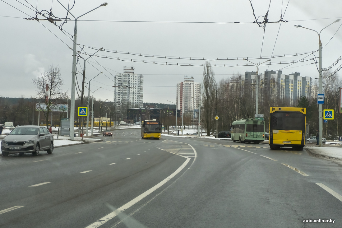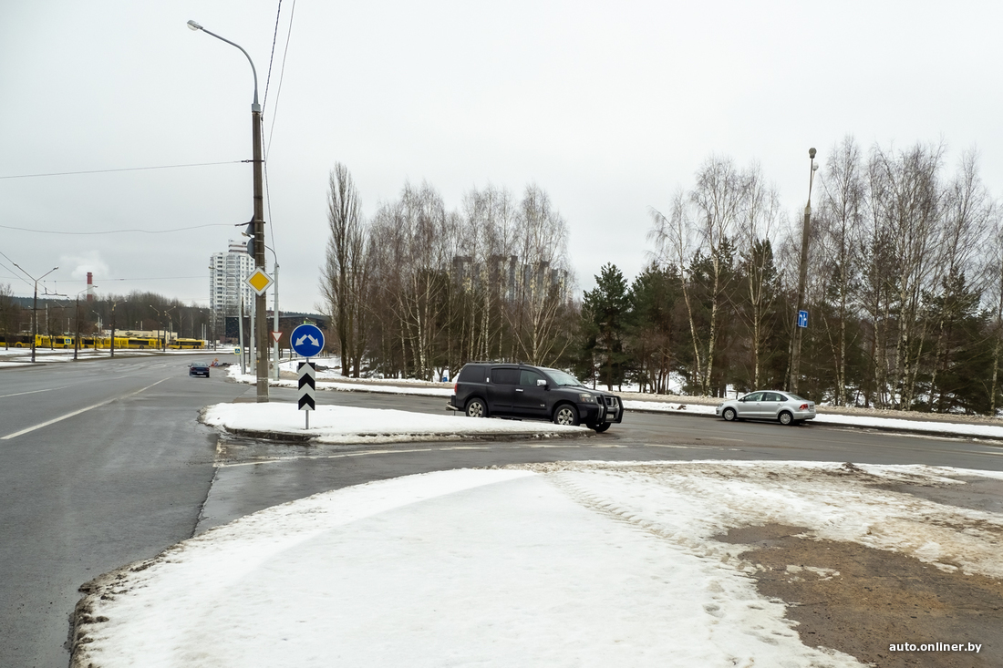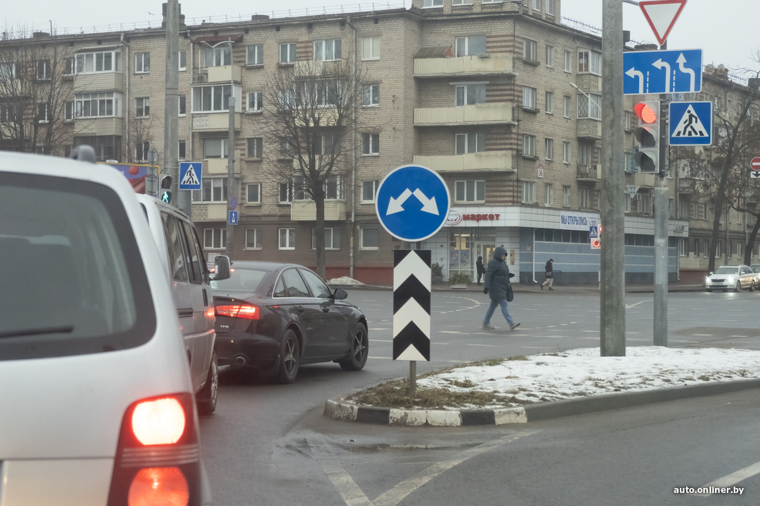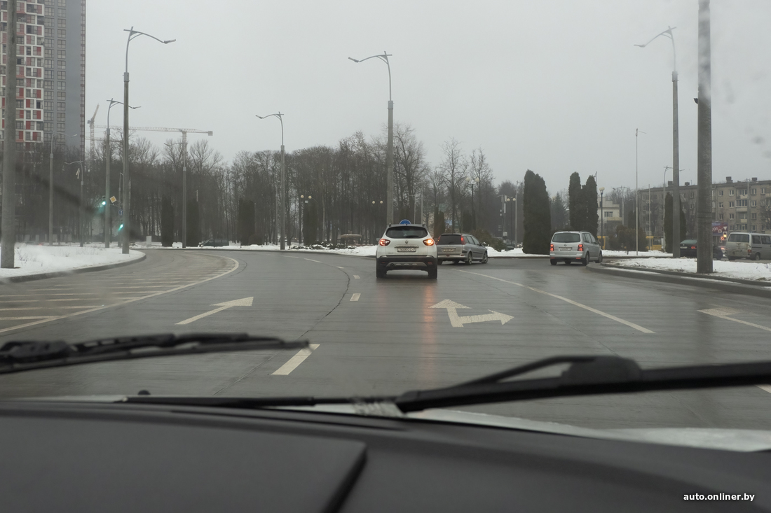 — Обычно в таких местах из выезда разрешают только поворот направо. Так сделано, к примеру, на перекрестке Матусевича — Пушкина: в основное время там по прямой ехать нельзя. А здесь можно. И навстречу поворачивают два ряда, которые друг другу еще и обзор закрывают, — говорит инструктор. — У них горит основной зеленый, хотя поворот из двух полос налево безопаснее, когда люди едут на стрелку. Когда нужно уступать встречным — это всегда трудности, всегда риски. Мы же поворачиваем, следим друг за другом — это тоже отвлекающий фактор, а нужно еще за встречкой смотреть. В общем, не самое удобное решение для водителей.