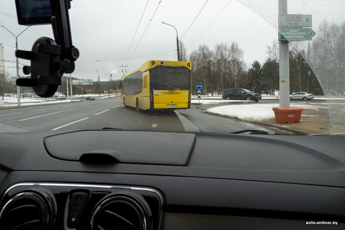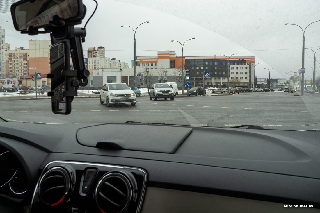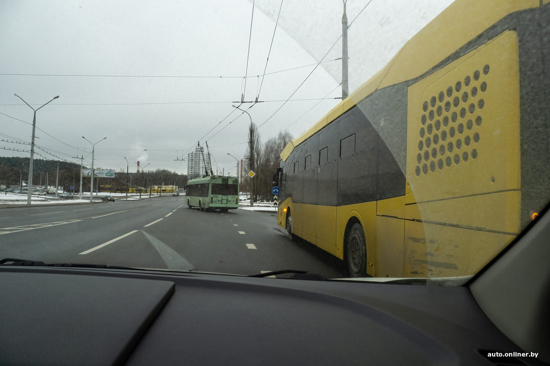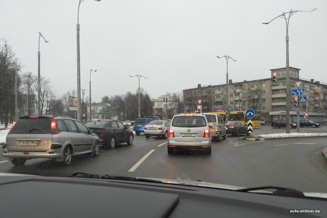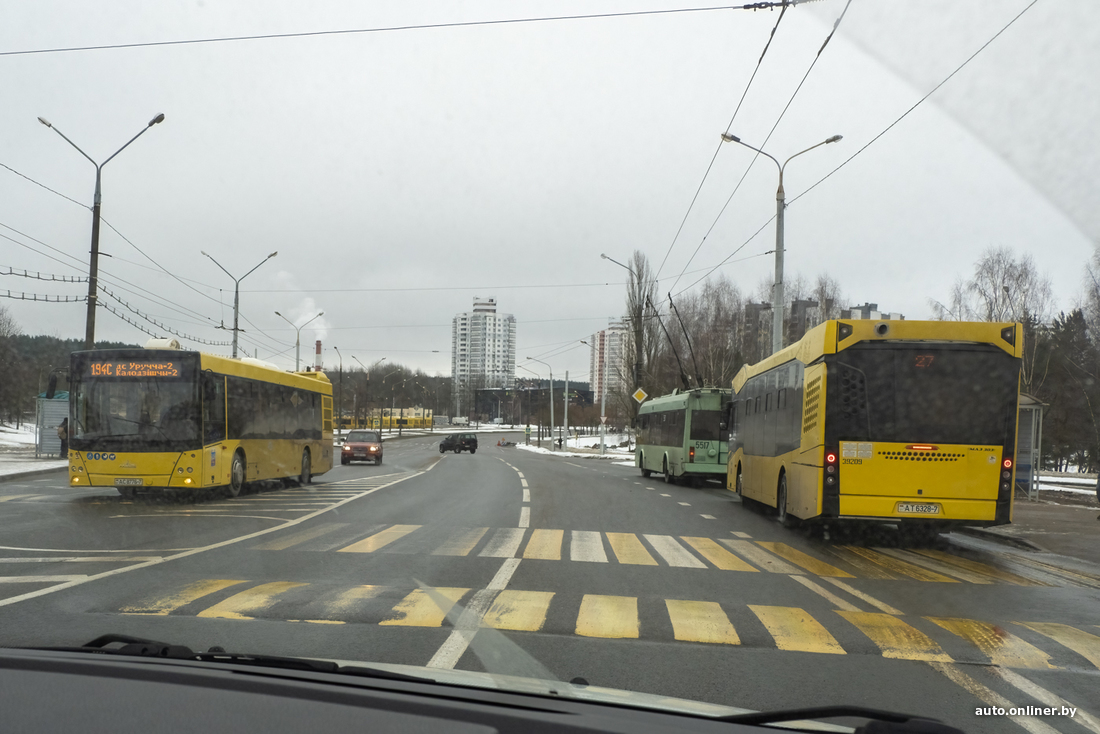 — Обычно в таких местах из выезда разрешают только поворот направо. Так сделано, к примеру, на перекрестке Матусевича — Пушкина: в основное время там по прямой ехать нельзя. А здесь можно. И навстречу поворачивают два ряда, которые друг другу еще и обзор закрывают, — говорит инструктор. — У них горит основной зеленый, хотя поворот из двух полос налево безопаснее, когда люди едут на стрелку. Когда нужно уступать встречным — это всегда трудности, всегда риски. Мы же поворачиваем, следим друг за другом — это тоже отвлекающий фактор, а нужно еще за встречкой смотреть. В общем, не самое удобное решение для водителей.
