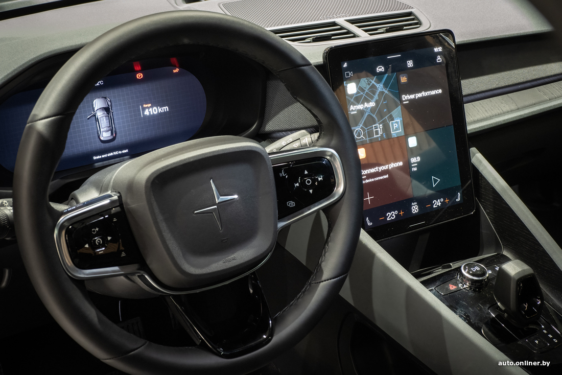 Polestar 2, хоть и выглядит меньше в сравнении с соседями, но имеет полный привод и разгоняется до 100 км/ч за 4,7 секунды. Общая мощность двух электродвигателей, расположенных на обеих осях, — 408 л. с. Автомобиль позиционируют как конкурента Tesla Model 3. Известно, что машину разработали специалисты Volvo, а собирают ее в китайском Луцяо. Серийная версия была представлена 27 февраля 2019 года, в 2021-м электрокар прошел краш-тест на 5 звезд по версии Euroncap. Под конец прошлого года количество собранных моделей превысило отметку в 100 тысяч экземпляров. На сайтах белорусских автоклассифайдов можно найти парочку объявлений о продаже Polestar, но вживую мы видим машину в РБ впервые.