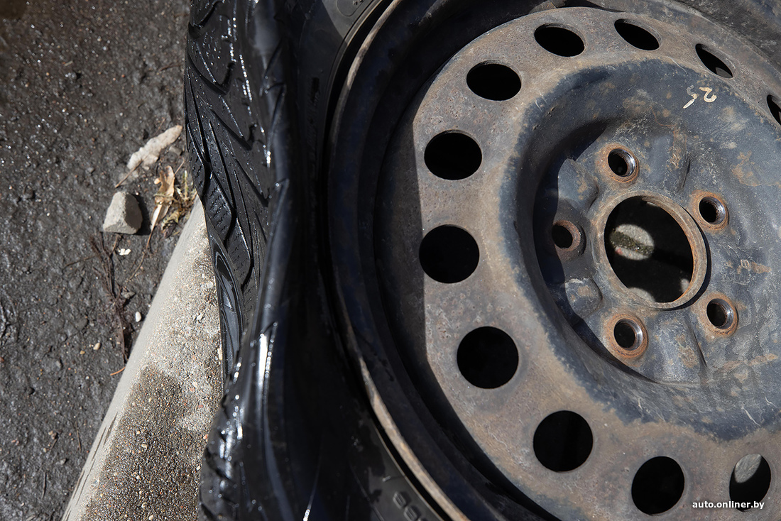 — Временный ремонт можно было бы сделать, но смысла в этом нет: шина сильно изношена, ее в любом случае стоит утилизировать, — объясняет Валентин. — Если бы у девушки не оказалось запаски, поставили бы свою, в бусе хранятся все ходовые размеры — от R13 до R18. Одно колесо стоит примерно столько же, сколько латка.