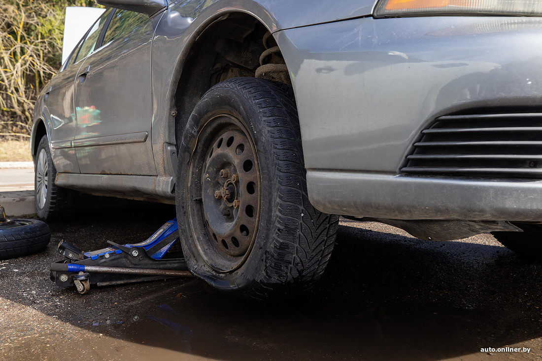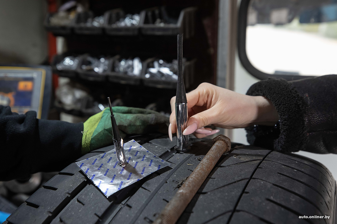 Спецы справились молниеносно, девушка заплатила 35 рублей и уехала, пообещав вести машину аккуратно и не быстрее 80 км/ч. А мы остались на свежем воздухе слушать теорию по восстановлению шин.