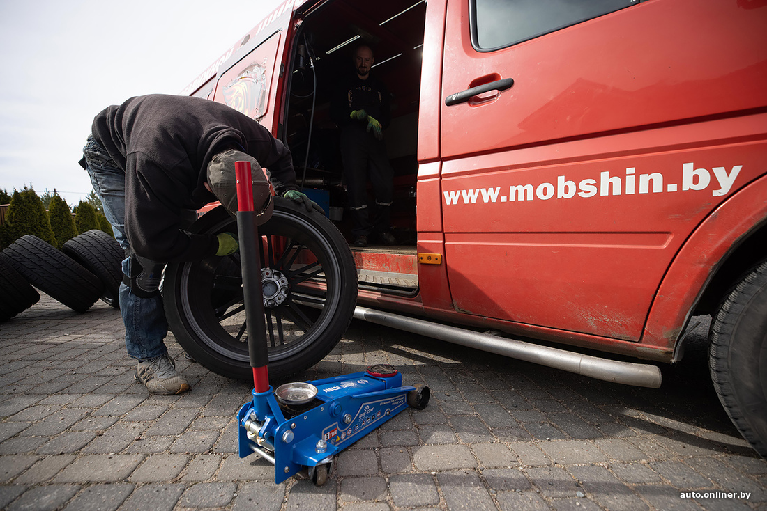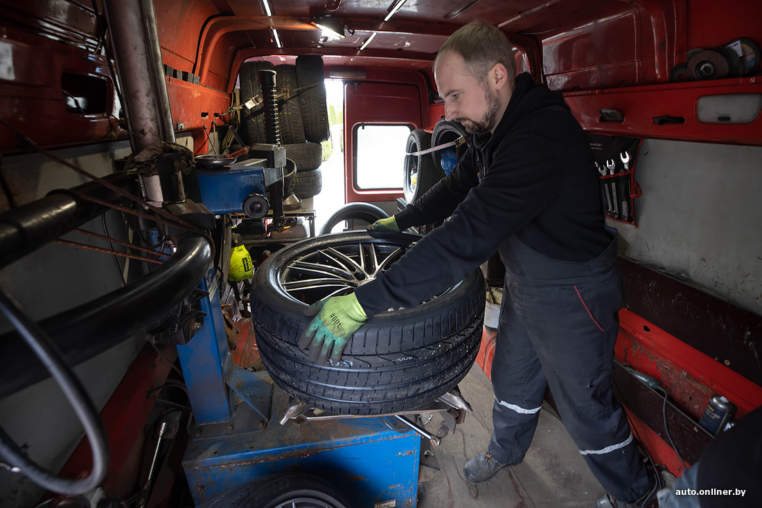 — Я 10 лет на мобильной шиномонтажке работаю, — рассказывает Валентин, мастер Mobshin.by. — Наша фирма одной из первых в стране стала предоставлять услугу ремонта и замены колес с выездом.