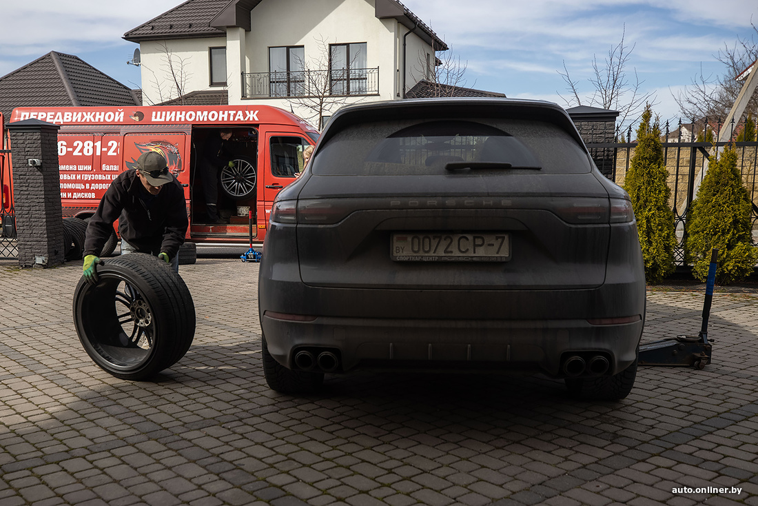 Следующая остановка — Тарасово. Минуем улицу с разношерстными, но неприлично дорогими домиками и наконец видим ожидающий нас у ворот Porsche. «Почему решила вызвать мобильный шиномонтаж, а не съездить на сервис? Потому что у меня две машины, хотелось их одновременно „переобуть“», — рассказывает владелица. Действительно, через пару минут к дому подъезжает еще и белоснежная Audi.