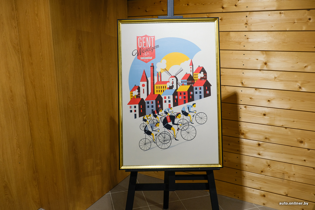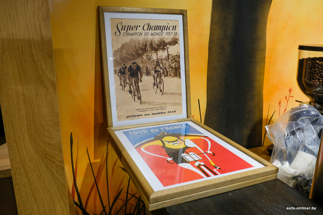 Здесь есть большой экран — можно будет смотреть трансляции великих гонок. Кстати, завтра «Тур Фландрии», через неделю «Париж — Рубэ» — монументальные весенние классики, которые теперь можно увидеть за чашкой кофе и в хорошей компании.