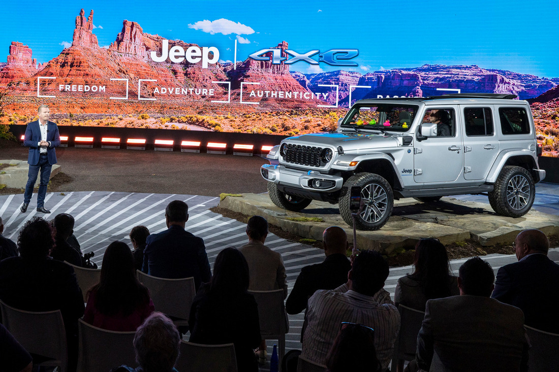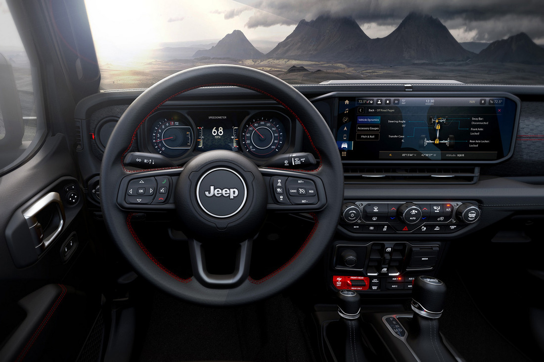 На стенде Jeep — обновленный Wrangler. Внедорожник получил новую радиаторную решетку уменьшенной высоты, колесные диски нового дизайна диаметром от 17 до 20 дюймов и перекроенный интерьер с 12,3-дюймовым сенсорным экраном мультимедиасистемы Uconnect 5 (идет уже в «базе»). Также доступна новая комплектация Rubicon X со стальными бамперами (передний — со встроенной лебедкой Warn с тяговым усилием 3630 кг), 35-дюймовыми шинами и аудиосистемой Alpine с 9 динамиками.