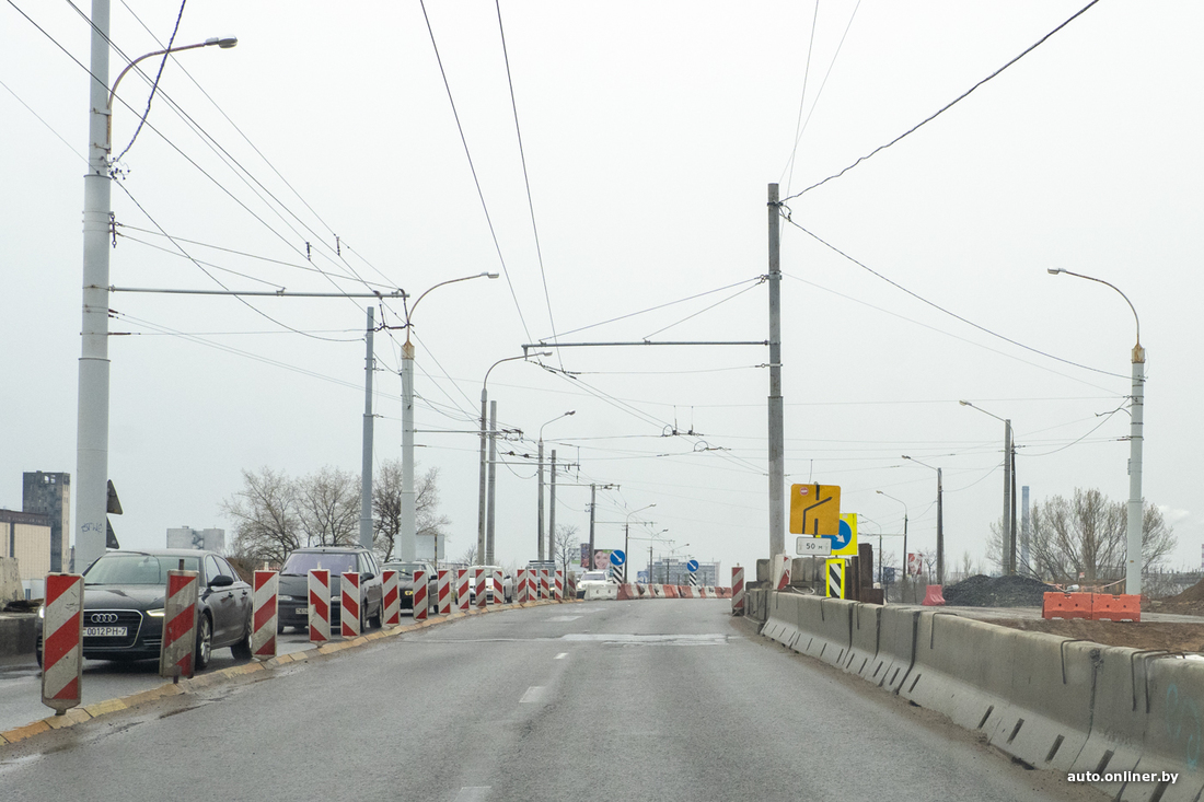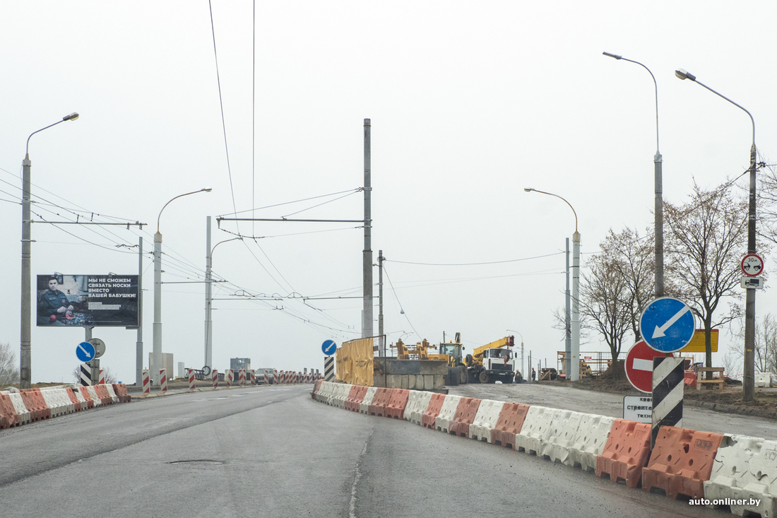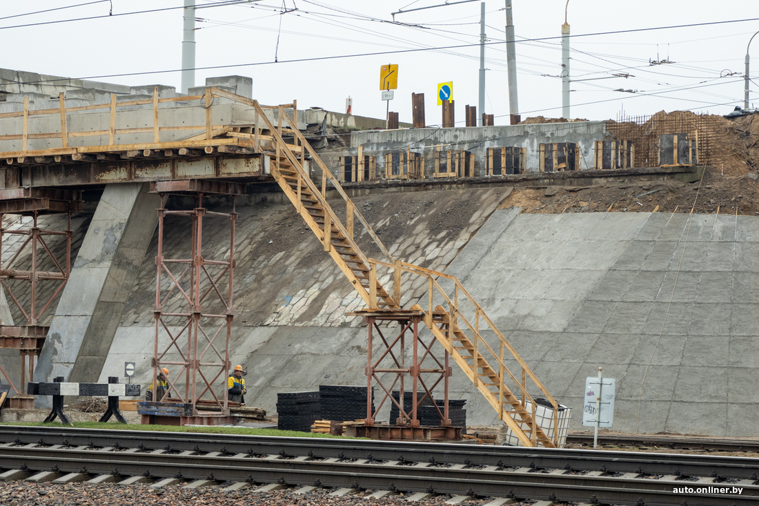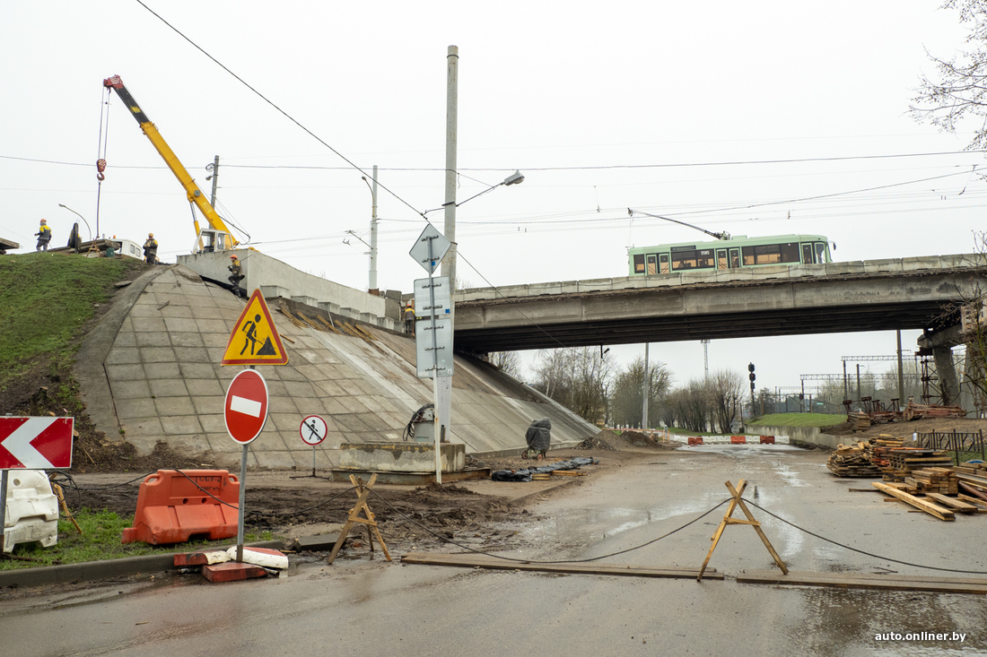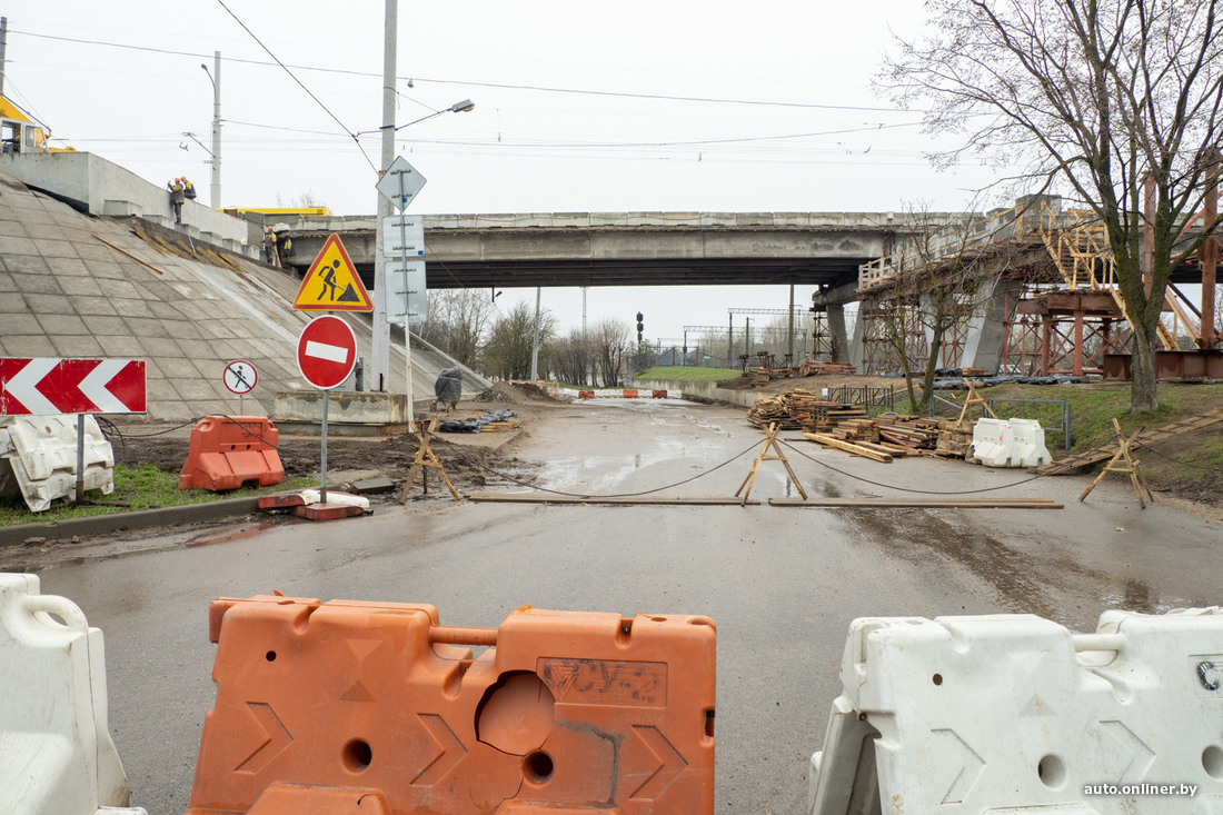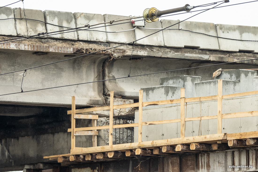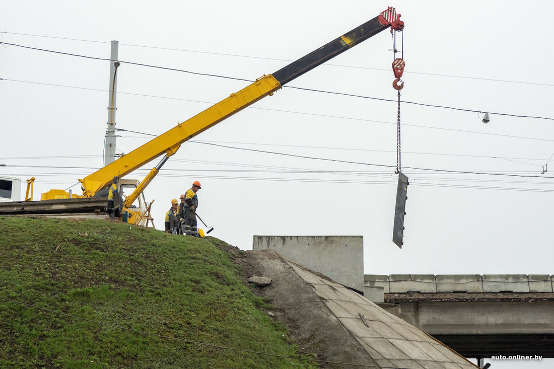 — Разобрали пешеходную часть объекта, затем асфальтобетонное покрытие, сняли перильные ограждения. Полностью демонтировали ригеля, несущие балки. Энергетики УДМС и Мингорисполкома перенесли на левую часть путепровода троллейбусные и световые мачты и занялись перекладкой инженерных сетей, их здесь довольно много, особенно силовых кабелей.