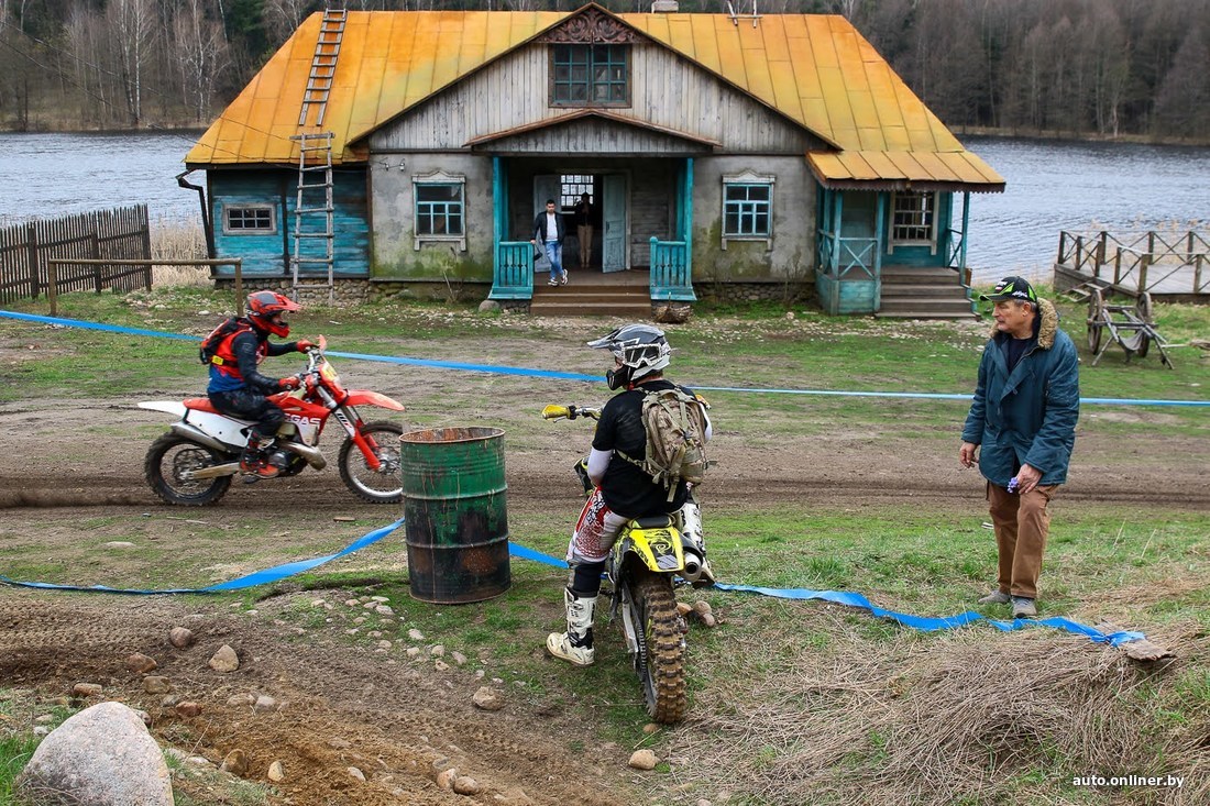 В минувшие выходные на натурной съемочной площадке киностудии «Беларусьфильм» было шумно. Нет, на этот раз кино тут не снимали, но экшен был не хуже, чем в самых известных кинолентах. На берегу озера и на фоне декораций прошли мотогонки эндуро. Мы сгоняли под Смолевичи и привезли оттуда фоторепортаж.