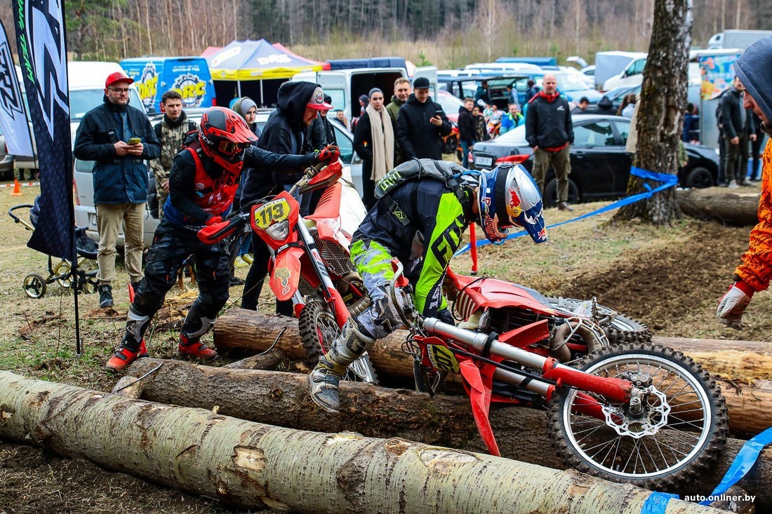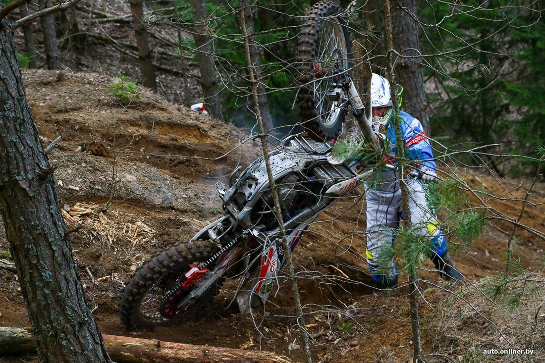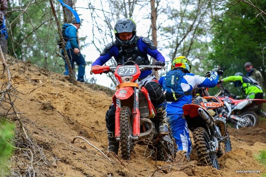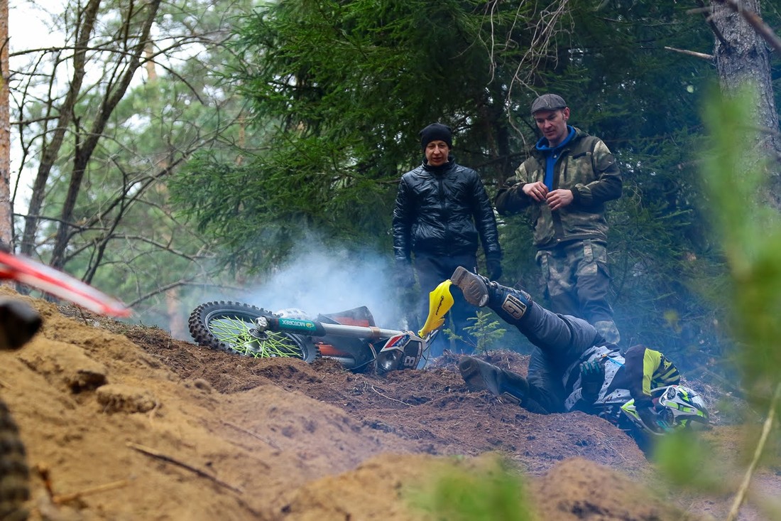 Ни одна из гонок эндуро не обходится без сложных подъемов в гору. На этот раз спортсменам повезло с погодой: было сухо, а оттого на грунте оставался «зацеп». Однако далеко не все гонщики преодолевали препятствия с первого раза: где-то приходилось затаскивать мотоцикл на гору вручную в буквальном смысле этого слова, а где-то на помощь приходили неравнодушные зрители.