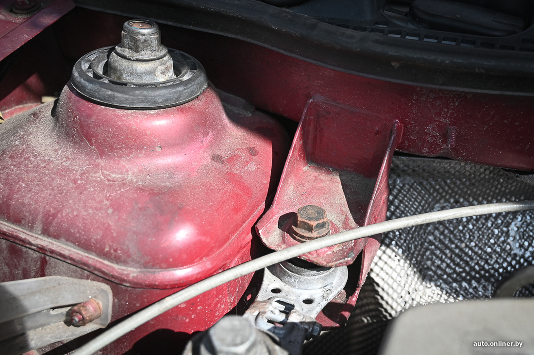— С передним подрамником все стало практически «он болт», на удивление. Когда купили донора, были опасения, что придется переделывать все и чуть ли не лонжероны от Megane приваривать. Однако сервисмены сняли подрамник и двигатель Largus, подкатили аналогичные агрегаты от Megane — и выяснилось, что все ставится на те же болты! Единственное место, которое пришлось дорабатывать, — это центральные поддерживающие опоры подрамника. Все остальное, начиная от суппортов и поворотных кулаков и заканчивая главным тормозным цилиндром, осталось стоковое от Megane RS. Но для гонок мы заказали тюнинговые тормоза, которые работают гораздо эффективнее, и сейчас в городе порой возникают сомнения, использовать ли их на полную: я-то остановлюсь, а как же те, кто едет сзади? А что касается подкапотного пространства, единственный не оригинальный элемент — это верхняя правая опора подушки двигателя. На Megane она есть, на Largus не было, поэтому пришлось изготовить. А еще правую опору двигателя пришлось немного приподнять при помощи проставки.