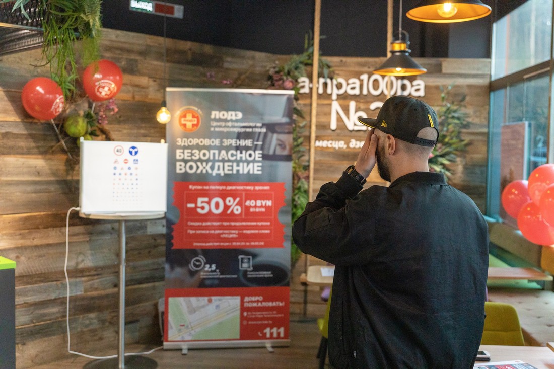— Автолюбители традиционно находятся в зоне риска, так как от остроты зрения нередко зависит их поведение на дороге. «Водительскую» таблицу с подсветкой изначально установили на АЗС «А-100» на Боровой, 7. В ближайшие дни стенд будет перемещаться между заправками: 27 апреля его можно застать на Харьковской, 81; 28 апреля — на Казимировской, 39; 29 апреля — на Долгиновском тракте, 190; 30 апреля — в Новодворском сельсовете, 82.